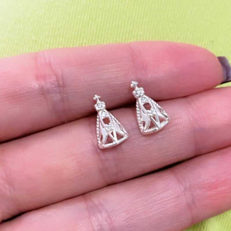 Brinco Pequeno Nossa Senhora Aparecida Prata 925 - Apresento a você o delicado brinco de Nossa Senhora Aparecida em prata 925. Uma peça de joalheria que combina beleza e devoção, perfeita para expressar sua fé e devoção à Virgem Maria. Feito com prata de lei 925, este brinco é um símbolo de proteção e amor divino, ideal para uso diário ou em ocasiões especiais. Adquira esta joia única e carregue a bênção de Nossa Senhora sempre com você. Garanta o seu agora! Características Gerais do Produto: • Garantia: Vitalícia no Metal Contra Defeitos de Fabricação • Material: Prata 925 • Cor Metal: Prata • Dimensão: Dimensões: 1,2cm de comprimento + Haste de 10mm • Fechamento Brinco: Tarraxa Acompanha o produto: • 01 Par de Brincos Garantia: • Garantia vitalícia no metal contra defeito de fabricação