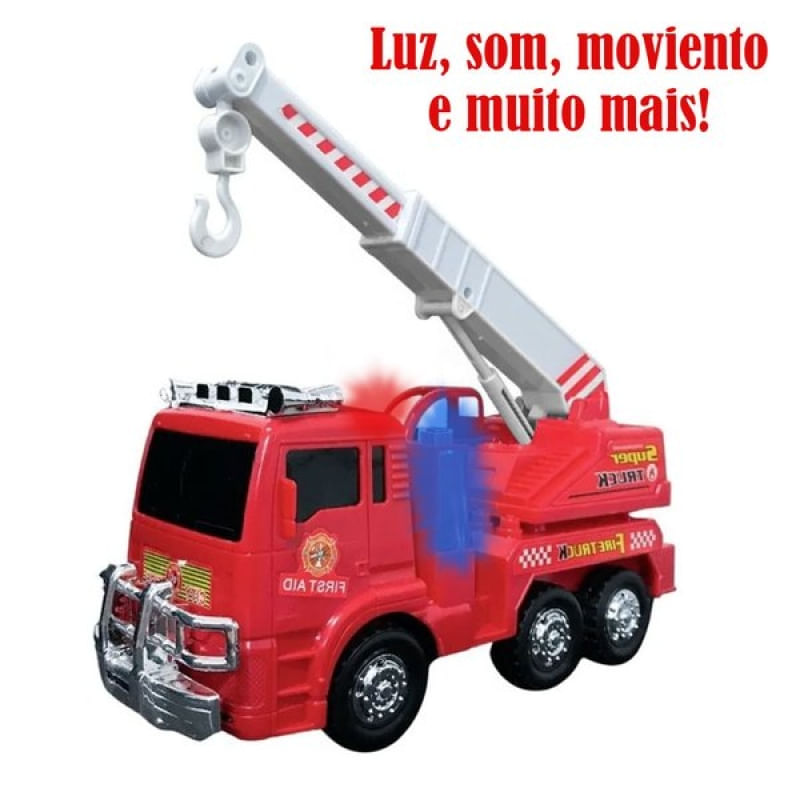 Brinquedo Caminhão Bombeiros Resgate Vermelho Com Luz e Sirene - Caminhão Bombeiro brinquedos Com Sons e Luzes A Pilha Divertido! Características: - Sons - Luzes - Bate e Volta - Escada Sobe e Desce Recomendado para crianças maiores de 3 anos. - Utiliza 3 Pilhas AA (NÃO INCLUSAS). - Material: Plástico e metal. SELO INMETRO: CE-BRI/BRICS 00160-15 NM 300/2002 Características Gerais do Produto: Garantia: • Garantia do site - 1 Mês