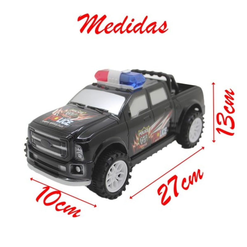 Brinquedo Camioneta Carrinho De Policia Fricção Preto - Conteúdo da embalagem: • 01 Caminoneta carrinho militar a fricção Preto Ficha técnica: • Material: Plástico abs. • Medidas: Altura: 13cm x Largura:10cm x Comprimento:27cm • Estampa: Preto • Rodas traseira com tração a fricção Características Gerais do Produto: Garantia: • Garantia do site - 1 Mês