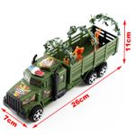 Brinquedo Carreta A Fricção Caminhão Militar Camuflado - Conteúdo da embalagem: 01 Caminhões a fricção camuflado Ficha técnica: Material: Plástico abs. Medidas: Altura:11cm X Largura:7cm X Comprimento:26cm Estampa: Camuflada Rodas traseira com tração a fricção Características Gerais do Produto: Garantia: • Garantia do site - 1 Mês