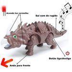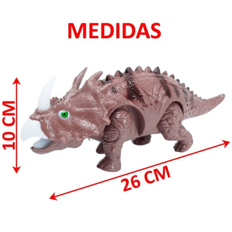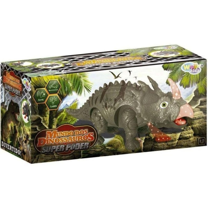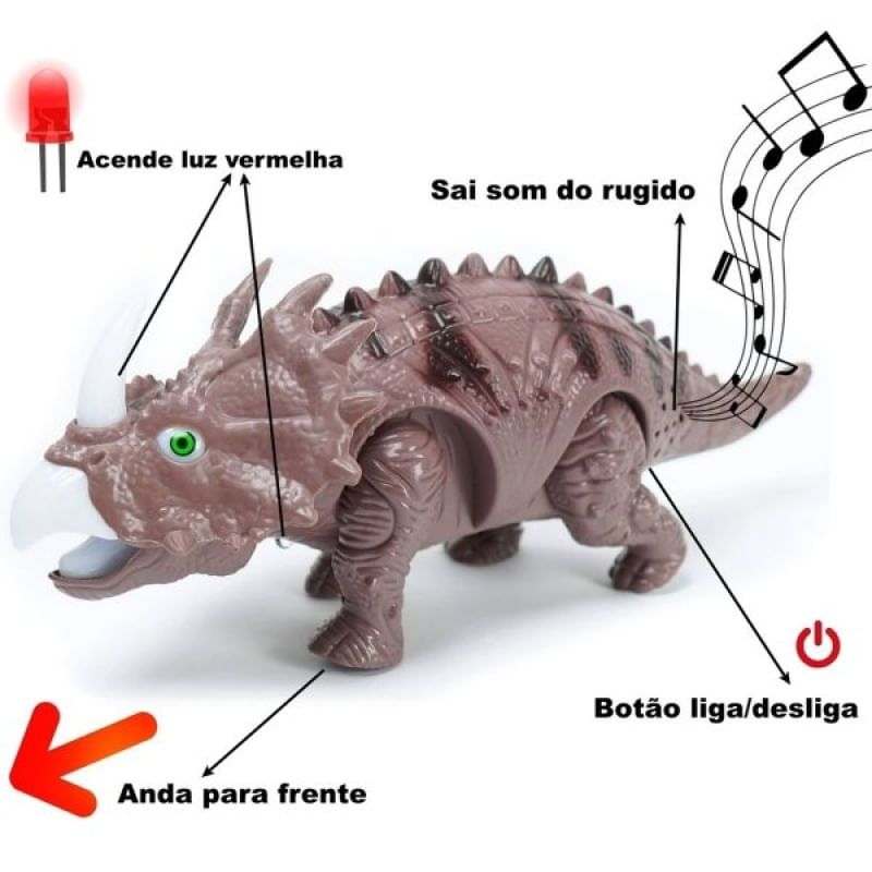 Brinquedo Dinossauro Tricerátops Com Movimento Som Luzes LED Marrom - Transforme a brincadeira em uma aventura pré-histórica! O Dinossauro Tricerátops com Luzes LEDs, Efeitos sonoros realistas de rugido de dinossauro e Anda Para Frente Sozinho é o presente ideal para crianças apaixonadas por dinossauros Especificações: Cores: Marrom e Cinza; Material: Plástico; Medidas: Altura 10cm x Largura 10cm x Comprimento 26cm; Necessário 2 Pilhas "AA" 1,5v (não inclusas na embalagem); Estimula a imaginação e a criatividade; Brinquedo interativo e educativo; Ideal para crianças a partir de 3 anos; Perfeito para presentear em aniversários, Dia das Crianças ou Natal; Certificação de Segurança: CE-BRI/BRICS-00070-14; NM 300/2002; Embalagem: 1 Brinquedo Dinossauro Tricerátops Com Luzes Led Som e Anda; Pilhas não incluídas; Características Gerais do Produto: • Material: Plástico • Modelo: Dinossauro Tricerátops • Cor: Cinza; Marrom • Dimensões aproximadas: Altura 10cm x Largura 10cm x Comprimento 26cm Garantia: • Garantia do site - 1 Mês