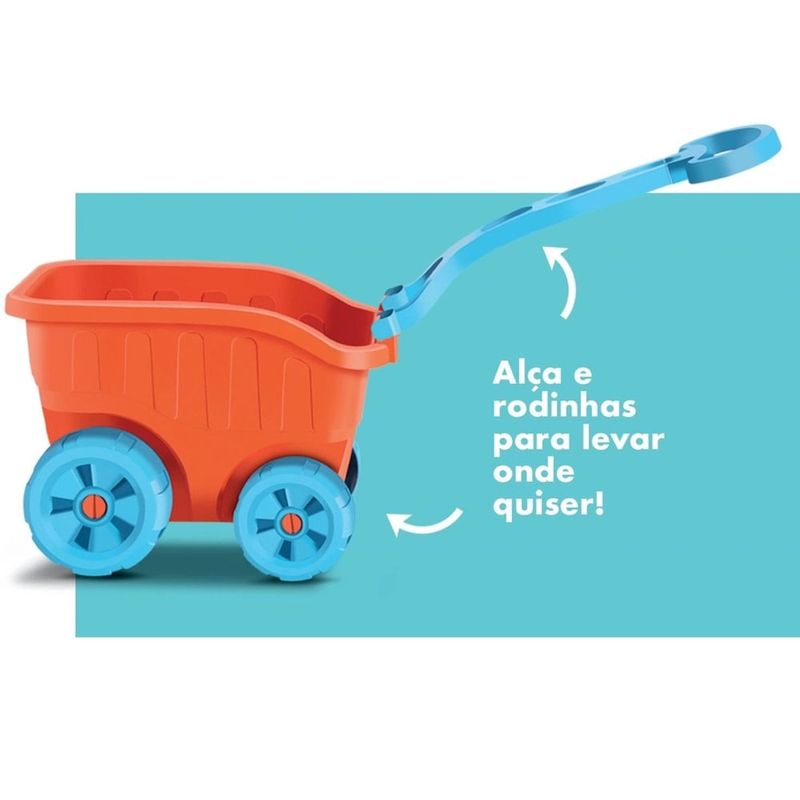 Brinquedo Infantil Divertoys Carriola Praia com Acessórios O que é? A Carriola Praia Divertoys é um brinquedo projetado especialmente para crianças que amam brincar ao ar livre. Feita com materiais de alta qualidade e resistente, esta carriola é ideal para levar à praia, parques ou quintais, proporcionando horas de diversão. O conjunto vem com acessórios divertidos, como moldes de areia e ferramentas, que estimulam a criatividade e a imaginação dos pequenos. Para que serve? Este brinquedo é perfeito para promover atividades lúdicas que incentivam o desenvolvimento motor e a socialização. As crianças podem usar a carriola para transportar areia, água ou brinquedos, criando suas próprias aventuras e jogos enquanto exploram o ambiente ao seu redor. Benefícios Desenvolvimento Motor: Ajuda no fortalecimento dos músculos e na coordenação motora ao empurrar e puxar a carriola.Criatividade e Imaginatividade: Os acessórios permitem que as crianças criem diferentes cenários e histórias, estimulando o pensamento criativo.Interação Social: Ideal para brincadeiras em grupo, promove a interação entre as crianças, ajudando no desenvolvimento de habilidades sociais.Atividade ao Ar Livre: Incentiva o jogo ao ar livre, promovendo a saúde e o bem-estar das crianças. Modo de usar Montagem: Retire todos os acessórios da embalagem e monte a carriola de acordo com as instruções.Brincar: As crianças podem usar a carriola para transportar areia, água ou outros objetos. Utilize os moldes e ferramentas incluídas para criar castelos de areia ou outros projetos.Limpeza: Após o uso, limpe os acessórios com água e sabão para garantir a durabilidade do produto. Modo de conservação Armazenamento: Guarde a carriola em local seco e arejado, longe da luz solar direta, para evitar o desbotamento. Limpeza: Lave com água e sabão neutro após cada uso, especialmente após brincadeiras na areia ou na água.Verificação: Faça inspeções regulares para garantir que não há partes soltas ou danificadas, garantindo a segurança da criança. Advertências Uso sob supervisão: Este brinquedo é destinado a crianças acima de 3 anos. Recomenda-se supervisão de um adulto durante o uso.Evitar ingestão: Não permita que a criança coloque peças pequenas na boca, pois pode haver risco de asfixia.Superfícies Irregulares: Tenha cuidado ao usar a carriola em superfícies irregulares ou inclinadas para evitar quedas.A Carriola Praia Divertoys é mais do que um simples brinquedo; é uma ferramenta educativa que combina diversão e aprendizado, proporcionando experiências memoráveis para toda a família!