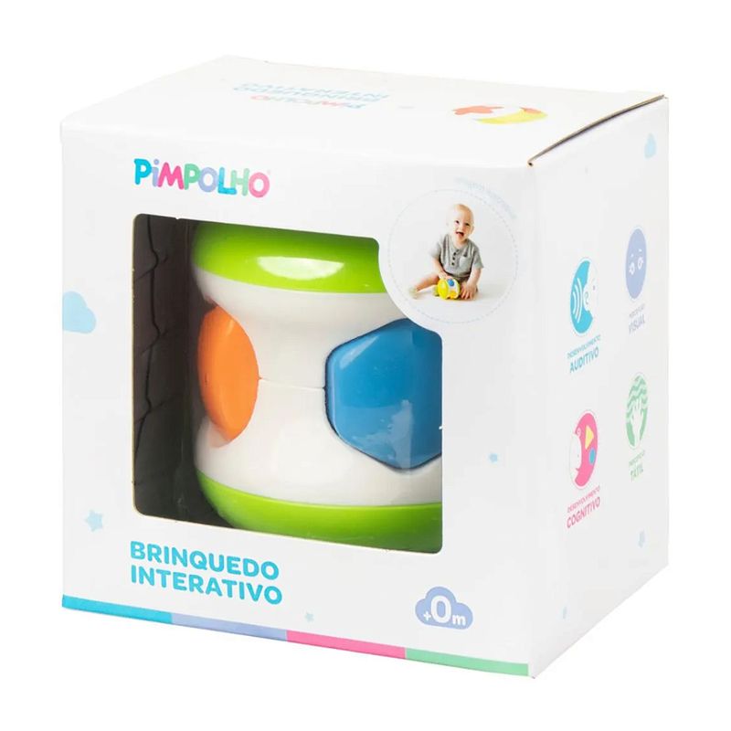 Brinquedo Interativo Verde - Pimpolho O brinquedo interativo colorido da Pimpolho desenvolve habilidades dos sentidos como visão, audição e tato. Ao pressionar o produto os sons estimulam a audição do bebê e o colorido do chocalho oferece estimulo visual. Desperta habilidades de pensamento enquanto o bebê observa e antecipa surpresas. Favorece a aprendizagem através da descoberta: as ações do bebê fazem as coisas acontecerem, ensinando sobre causa e efeito, fortalecendo a capacidade de coordenação. Auxilia no crescimento do criança, beneficiando seu desenvolvimento. CONTÉM 1 UNIDADE. Tamanho: 9x9x9 cm. Conservação: Produto atóxico. Não expor à luz do sol para evitar o envelhecimento precoce do produto. Faixa Etária: 0 Meses+ Registro do Inmetro: 017085/2024