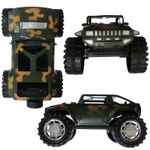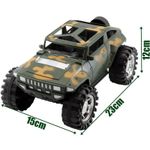 Brinquedo Jipe Carrinho Militar Fricção Camuflado Verde - Conteúdo da embalagem: 01 Jipe carrinho militar a fricção camuflado Ficha técnica: Material: Plástico abs. Medidas: Altura:12cm x Largura:15cm x Comprimento:23cm Estampa: Camuflada Rodas traseira com tração a fricção Características Gerais do Produto: Garantia: • Garantia do site - 1 Mês