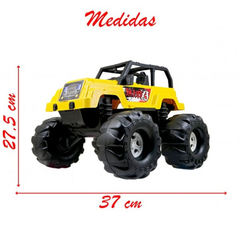 Brinquedo Jipe Extreme Trilha Passeio Cor Sortida 37cm - Brincar é uma forma divertida de aprender! É através da brincadeira que a criança entra no processo de aprendizagem. Proporcionando autonomia, criatividade, habilidades sociais, culturais, emocionais e físicas. Nossos produtos oferecem diversão e estimulam o desenvolvimento cognitivo, intelectual e afetivo das crianças! Todos os produtos possuem laudo técnico que comprova a atoxidade, qualidade na fabricação e certificado de qualidade do INMETRO. Priorizando a segurança na hora da brincadeira. Pronto para qualquer terreno e obstáculo, força nas escaladas e nas trilhas! Adrenalina e aventura andam juntas com o Jipe Extreme! Contém 1 unidade. Indicado para maiores de 3 anos. Observação: enviaremos conforme disponibilidade de estoque, não sendo possível escolher a cor. Características Gerais do Produto: Garantia: • Garantia do site - 1 Mês