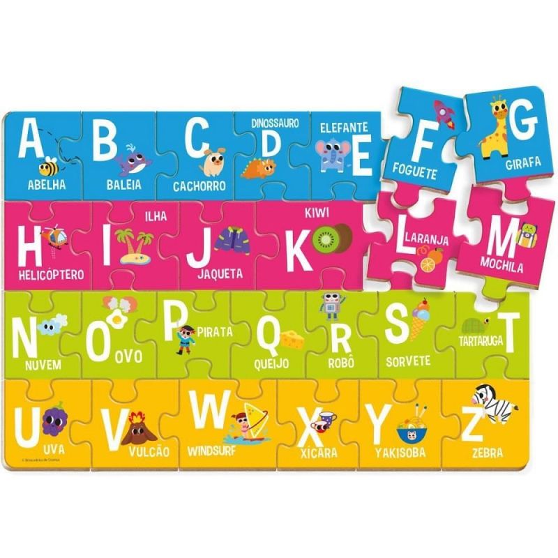 O que é o Brinquedo Quebra-Cabeça Alfabeto 26 Peças? O Brinquedo Quebra-Cabeça Alfabeto 26 Peças é um jogo educativo que auxilia no desenvolvimento cognitivo e motor das crianças enquanto elas aprendem o alfabeto de forma divertida. Com 26 peças coloridas, cada letra se encaixa perfeitamente, estimulando o raciocínio lógico e a coordenação motora dos pequenos. Para que serve? Este brinquedo tem como objetivo ensinar o alfabeto às crianças de maneira lúdica e interativa. Ele incentiva o reconhecimento das letras, a associação de formas e cores, além de promover a memorização das letras do alfabeto, contribuindo para a alfabetização inicial. Benefícios Estimula o aprendizado do alfabeto; Desenvolve a coordenação motora e a percepção visual; Promove o raciocínio lógico e a resolução de problemas; Incentiva a interação social e o trabalho em equipe; Peças coloridas e atrativas, ideais para chamar a atenção dos pequenos. Modo de uso Separe todas as 26 peças do alfabeto; Incentive a criança a identificar cada letra e encaixá-la no local correto; Pode ser utilizado de forma individual ou em grupo, promovendo desafios e atividades educativas. Advertências Recomendado para crianças a partir de 4 anos; Utilizar sob a supervisão de um adulto; Manter fora do alcance de crianças menores de 3 anos devido ao risco de engasgamento com peças pequenas. Código Interno do Produto : 5083.