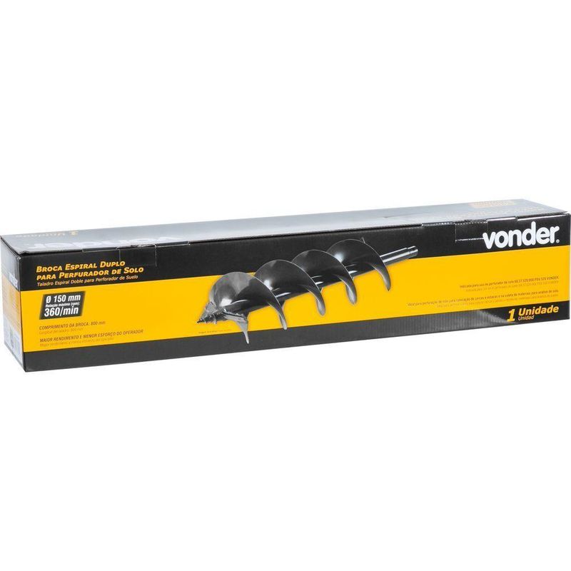 Broca Para Perfurador Vonder Solo Espiral Duplo 150x800mmRef. Fornecedor: 5399000150Marca: VonderConteúdo Embalagem:1 BrocaAplicações e dicas de uso:Indicada para uso no Perfurador de Solo PSV 520 VONDER (68.37.520.000). Ideal para perfuração de solo para colocação de cercas e estacas, para plantio de mudas de árvores e na coleta de materiais para análise de solo. Indicado para solos isentos de pedras, raízes, metais, entre outros.Destaques e diferenciais:Proporciona maior rendimento e menor esforço do operador. Possui espiral duplo.Características Técnicas:Material: Aço Produto: Broca