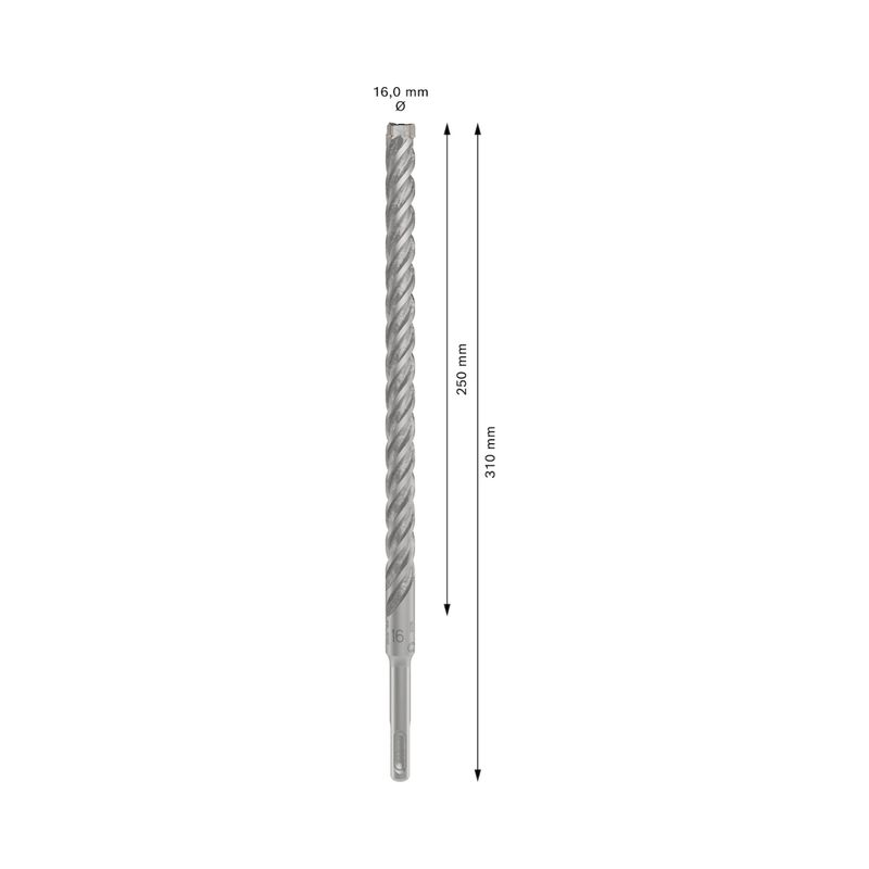 As Brocas para concreto PRO SDS plus-5X oferecem perfuração altamente eficiente em concreto armado. Sua ponta com 4 arestas de corte em carbeto de tungstênio de alta qualidade, evita travamentos e quebras. Possui ponta centradora, para uma perfuração eficiente do inicio ao fim. Seu corpo com 4 espirais garantem uma remoção de pó eficiente evitando o aquecimento da broca, aumentando sua vida útil. A broca destina-se a utilização em alvenaria, concreto e concreto armado. Para garantir uma perfuração de precisão, como em aplicações como ancoragem, a broca possui a marca de teste da Comissão da Associação de Brocas para Alvenaria PGM, que garante a conformidade com tolerâncias apertadas, perfuração exata e fixações firmes. Possui até 1,5x mais vida útil que a broca SDS Plus-1 da Bosch. É compatível com martelos rotativos que possuam encaixe SDS plus.SKU: 00745566
