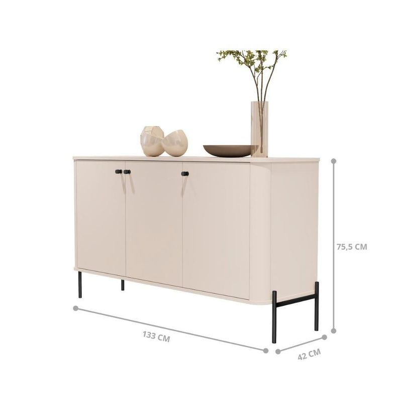 Buffet Aparador Para Sala De Estar 3 Portas Pés Em Aço - Off White Preto Off White PretoEste Buffet é uma solução elegante e funcional para ambientes como salas de jantar e estar. Com design sofisticado, apresenta amplas divisões internas que promovem uma organização eficiente dos objetos armazenados. Equipe de três portas, quatro pés e puxadores em metal, o que adiciona um toque de modernidade e durabilidade ao móvel. Ideal para quem busca praticidade sem abrir mão do estilo.Dimensões do produto:Altura: 75,5 cmLargura: 133 cmProfundidade: 42 cmCores Disponíveis:- Off White Nature Bronze- Off White Nature Dourado- Off White Nature Preto- Off White Bronze- Off White Dourado- Off White PretoInformações do produto:Possui portas: sim (3) Possui prateleiras: Sim (1) Nichos: Sim (2) Pés: Sim (4) Material: MDP 15MMItens Inclusos01 BuffetKit completo para montagem e manual de instruções.Garantia:3 meses contra defeito de fabricaçãoInformações complementares:- Fotos meramente ilustrativas do produto no ambiente.- Verificar descrição e tamanho do produto antes da compra.- Avaliar a mercadoria no ato do recebimento e recusar em caso de divergência ou avarias.- Mantenha as informações de contato e endereço de entrega atualizados para entrarmos em contato caso necessário.* Sugerimos a contratação de um montador profissional para a montagem do produto. Não nos responsabilizamos por avarias causadas no ato da montagem.* Não nos responsabilizamos pela montagem e desmontagem do produto no ato da entrega e devolução, assim como os custos gerados nestas situações.* A transportadora entregará o produto no andar térreo do endereço de entrega.* Não nos responsabilizamos por subir escadas, corredores e elevadores ou transporte por guincho em apartamentos.*Não expor o produto diretamente à luz solar e à umidade*Limpar com flanela ou pano macio seco, não utilizar produtos abrasivos, desengordurantes, álcool ou solvente. ALTURA DO PRODUTO (CM): 75,5 | ALTURA DO PRODUTO COM EMBALAGEM (CM): 44 | COMPRIMENTO DO PRODUTO (CM): 42 | COMPRIMENTO PRODUTO COM EMBALAGEM (CM): 120 | CONTEÚDO DA EMBALAGEM: 1 Buffet | DESCRIÇÃO DO TAMANHO: 75,5x133x42 | ESTADO DE ORIGEM: SP | INSTRUÇÕES/CUIDADOS: Limpar com flanela ou pano macio seco, não utilizar produtos abrasivos, desengordurantes, álcool ou solvente. Não expor o produto diretamente à luz solar e à umidade | LARGURA DO PRODUTO (CM): 133 | LARGURA PRODUTO COM EMBALAGEM (CM): 133 | MARCA: Casa H | MATERIAL PARA FILTRO: MDF | MATERIAL PRINCIPAL: MDF | PESO DO PRODUTO (KG): 30,7 | PRODUTO PRECISA DE MONTAGEM?: Sim, a montagem é facil mas sugerimos a contratação de um montador profissional para a montagem do produto. Não nos responsabilizamos por danos causados no ato da montagem. | PROFUNDIDADE: 42 | Quantidade de caixas de embalagem: 1 | QUANTIDADE DE GAVETAS: 0 | QUANTIDADE DE PORTAS: 3 | QUANTIDADES DE CAIXAS DE EMBALAGEM: 1 | Requer montagem: Sim | Largura: 133 | País de Origem: Brasil | Duração da Garantia: 3 Meses | Montagem: Necessita Montagem Cor: Off White Preto