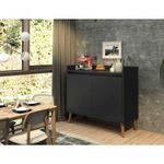 Buffet Aparador Retrô Delux 2 Portas Preto - MoveisaquiIdeal para organizar melhor sua sala de jantar ou de estar, o Buffet Aparador Retrô Delux 2 Portas - MoveisAqui trouxe de volta a pegada retrô que veio para ficar. Os pés estilo palito, levemente angulados, se destacam pelo charme que garante à peça. Seus compartimentos internos são ideais para armazenar e organizar diversos tipos de objetos pessoais, além de seu aparelho de jantar e demais itens que sejam necessários. Lindo, robusto e versátil, garante um espaço moderno e ões do Produto Montado:Altura: 80 cmLargura: 90 cmProfundidade: 33 cmObservações:- Produzido em MDP;- 2 portas com dobradiças metálicas;- Pés palito, estilo retrô, em madeira pinus;- Peso suportado por prateleira: até 7kg;- Pintura Ultravioleta com acabamento fosco.