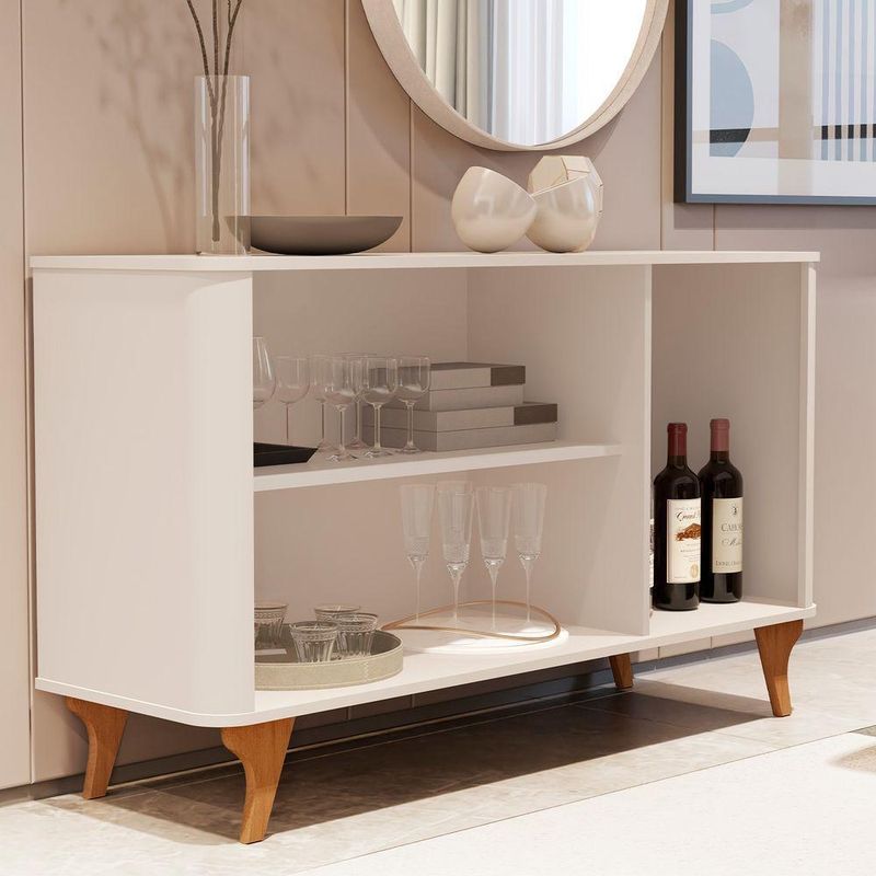 Buffet Aruma Com 3 Portas E Cantos Arredondados Off WhiteCom design moderno e funcional, o Buffet Arumã 3 Portas é perfeito para quem busca unir estilo, praticidade e organização em um único mó visual é marcado pelos cantos arredondados exclusivos da linha Arumã, conferindo um toque de sofisticação e . Os puxadores metálicos com acabamento refinado, aliados aos pés em madeira maciça, garantem um charme extra e alta durabilidade.Internamente, os compartimentos são bem distribuídos, proporcionando amplo espaço para guardar utensílios, louças, objetos decorativos ou o que preferir, mantendo o ambiente sempre ões:Altura: 77,0 cmLargura: 130,5 cmProfundidade: 40,5 cmObservações:- Cantos arredondados exclusivos da linha Arumã- Puxadores metálicos com acabamento refinado- Pés em madeira maciça, conferindo solidez e durabilidade- Estrutura interna com divisórias para melhor organização dos ambientes- Visual clean que valoriza a decoração sem pesar