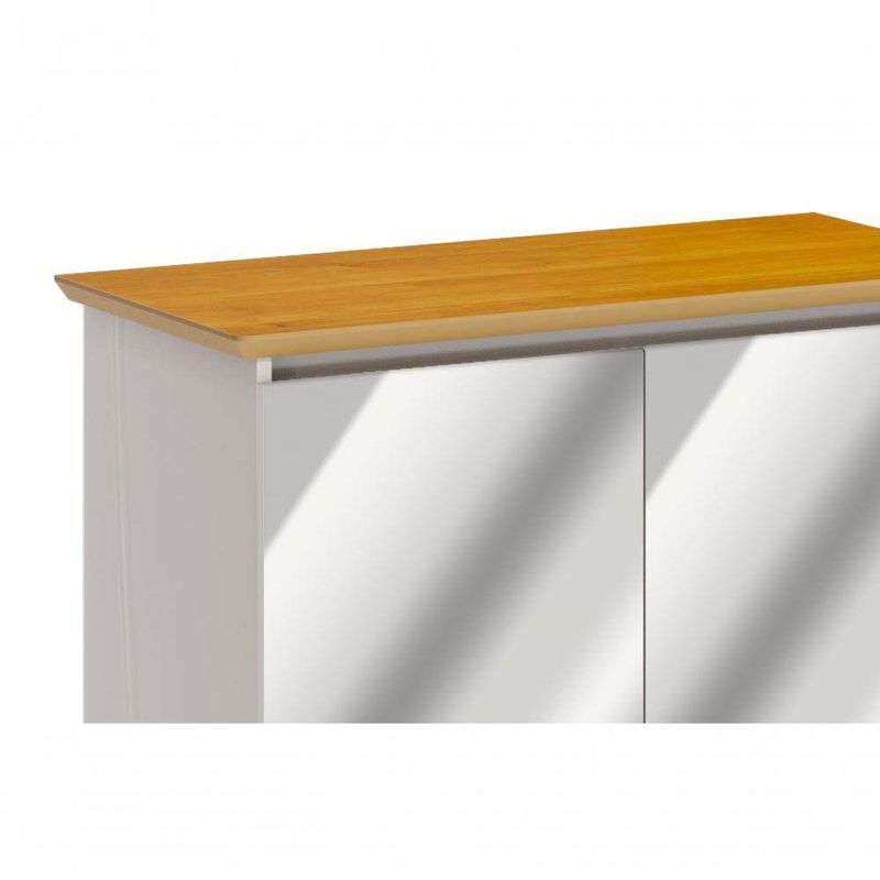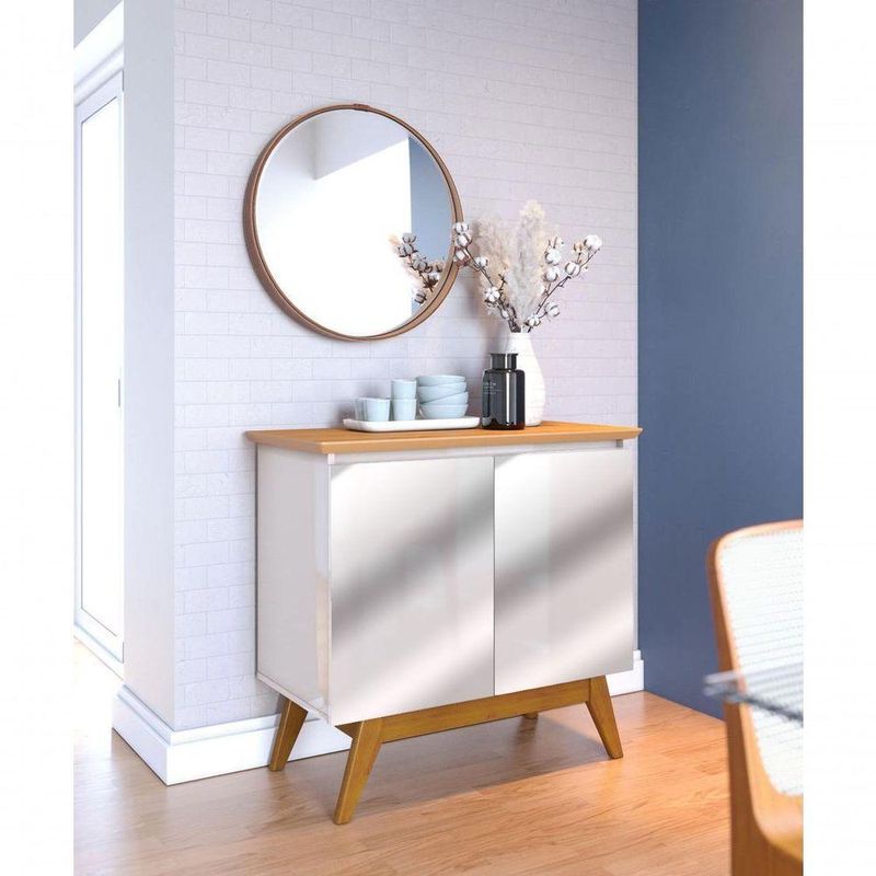Buffet Classic 2 Portas Off White Com Nature E Espelho - Imcal MóveisO Buffet Classic 2 Portas - Imcal Móveis possui design requintado, que mistura sofisticação e modernidade, proporcionando um toque de charme e elegância ao seu ambiente. Produzido em MDP e MDF, oferece toda a qualidade que você merece, possui ainda funcionalidades distintas, podendo ser usado, por exemplo, como bancada, balcão e aparador e em ambientes como salas de estar e jantar. Uma belezura, não é mesmo? Aproveita e leva! =DDimensões do Produto Montado:Altura: 79 cmLargura: 85,4 cmProfundidade: 41,3 cmObservações:- Fabricado em MDF e MDP;- 2 portas com dobradiças metálicas;- Pés em madeira maciça;- Portas com espelho;- Pintura Ultravioleta com acabamento brilho na cor off white;- Pintura Ultravioleta com acabamento fosco na cor nature.