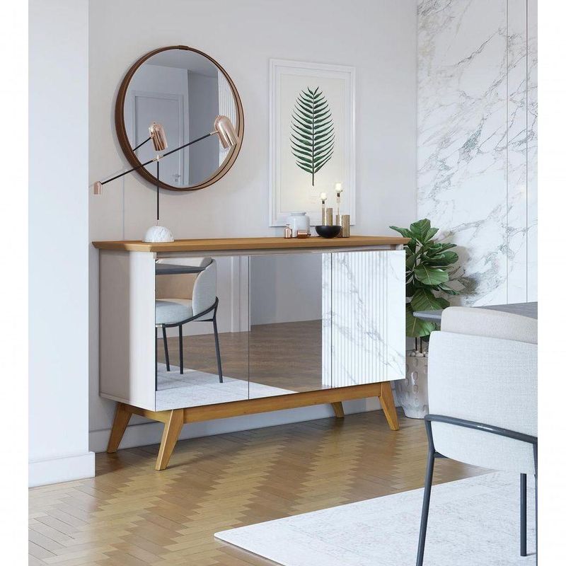 Buffet Classic 3 Portas Off White Com Nature E Espelho - Imcal MóveisO Buffet Classic 3 Portas - Imcal Móveis possui design requintado, que mistura sofisticação e modernidade, proporcionando um toque de charme e elegância ao seu ambiente. Produzido em MDP e MDF, oferece toda a qualidade que você merece, possui ainda funcionalidades distintas, podendo ser usado, por exemplo, como bancada, balcão e aparador e em ambientes como salas de estar e jantar. Uma belezura, não é mesmo? Aproveita e leva! =DDimensões do Produto Montado:Altura: 79 cmLargura: 125,2 cmProfundidade: 41,3 cmObservações:- Fabricado em MDF e MDP;- 3 portas com dobradiças metálicas;- Pés em madeira maciça;- Portas com espelho;- Pintura Ultravioleta com acabamento brilho na cor off white;- Pintura Ultravioleta com acabamento fosco na cor nature.