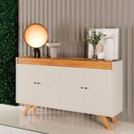 Buffet Madrid Pés Em Madeira Maciça 4 Portas Mavaular Off White/naturaleBuffet Madrid Pés em madeira maciça 4 Portas MavaularO Buffet Madrid é o móvel ideal para quem busca funcionalidade e praticidade, sem abrir mão da beleza. Com design sofisticado, ele complementa com perfeição a decoração do seu ambiente. Possui 4 portas com puxadores e batente de silicone proporcionando fechamento silencioso para melhor durabilidade do seu móvel. Possui também uma prateleira interna e amplo espaço de armazenamento, além de pés em madeira maciça que garantem maior estabilidade e segurança. Aproveite e garanta o seu!Medidas do Produto Montado:Altura: 81,7 cmLargura: 121 cmProfundidade: 35,5 cmPeso: 40 KgCaracterísticas:- Amplo espaço de armazenamento interno- Detalhe ripado- Design elegante e único- Puxadores nas portas- Batente de silicone- Base de 25mm- Pés em madeira maciçaFicha Técnica:- Marca: Mavaular Móveis- Modelo: Buffet Madrid- Ambiente principal: Sala de estar- Material predominante: mdp- Acabamento: Brilho- Possui pés: Sim- Material dos pés: Madeira maciça- Possui portas: 4- Possui prateleira interna: Sim- Peso máximo por prateleira: 10 Kg- Possui Espelho: Não- Necessita de montagem: Sim- Complexidade de montagem: Média- Sistema de montagem: Parafusos e cavilhas e girofix- Recomendações de uso, manutenção e limpeza: Pano levemente umedecido com sabão neutroInformações importantes:- Não nos responsabilizamos pela montagem e instalação dos produtos. A montagem deve ser realizada por um profissional, conforme as instruções do manual do produto. A responsabilidade da montagem é do consumidor.- Os Objetos que ambientam as imagens não acompanham o produto.- Pode haver alguma diferença de tonalidade entre a foto e o produto, devido ao tratamento de imagens e a calibração do seu monitor ou dispositivo.- A entrega é realizada por transportadora, não nos responsabilizamos, no ato da entrega por desmontagens, subir escadas/elevadores ou transporte por guincho para apartamentos. Eventuais despesas são de responsabilidade do consumidor.- Antes de comprar o seu produto verifique as medidas e o local onde pretende instalar.