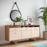 Buffet Soft Nature Off White - Hb MóveisBuffet Soft Nature Off White – HB MóveisQuer inovar sua sala de estar e está procurando Buffet para dar um toque a mais. Aqui você encontra, apresentamos o Buffet da linha Soft desenvolvido pela HB Móveis com um lindo e pratico design na cor Nature Off White, proporcionando modernidade e um fino toque na sua sala de estar, possui um amplo espaço interno e bandeja lateral estilo bar. Não deixe de aproveitar,confira as características técnicas e garanta o seu!Características Técnicas: - Desenvolvido em MDP e MDF de 25mm e 15mm - Pintura na cor Nature Off White - Peças Nature com acabamento em impressão U.V Texturizada e peças na cor Off White em Impressão U.V Alto Brilho - Possui 01 Gaveta e 01 Gavetão - Corrediças telescópicas - 02 Portas com frisos decorativos alinhados com as gavetas laterais - Dobradiças Caneco Metálicas - Puxadores em poliestireno com acabamento metálico fosco - 02 Prateleiras - Bandeja com vidro e espelho 3mm sobre o tampo - Pés de madeira maciça com design exclusivo e acabamento envernizado - Conta com amplo espaço interno e um lindo designDimensões: Altura: 76 cm Largura: 160 cm Profundidade: 40 cmObs: Não realizamos a montagem, porém acompanha manual de instruções.