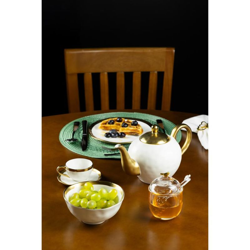 Bule para Chá Wolff Dubai de Porcelana Branco e Dourado 1LViva a arte da infusão com o Bule de Chá de Porcelana Dubai Branco e Dourado da Wolff. Cada detalhe é uma expressão de requinte, proporcionando uma experiência única em cada gota de chá. Características que se Destacam: Design Dubai: O bule apresenta o elegante design Dubai, combinando o branco clássico com detalhes dourados que conferem um toque de luxo à sua ritualística do chá. Porcelana Premium: Fabricado com porcelana de alta qualidade, o bule não apenas impressiona visualmente, mas também oferece durabilidade e resistência no uso diário. Capacidade Ideal: Com 1 litro de capacidade, o bule é perfeito para preparar e servir várias xícaras, tornando suas reuniões ainda mais especiais. Alça Ergonômica: A alça ergonômica proporciona conforto durante o despejo, garantindo uma experiência de serviço suave e agradável. Adquira agora o Bule Dubai de Porcelana e eleve a sua hora do chá a um novo patamar de sofisticação. Desfrute de infusões com estilo e elegância incomparáveis. Sirva com classe - Faça do Bule Dubai a escolha para momentos de chá inesquecíveis e repletos de refinamento. Contém: 1 BuleForno: NãoFogão: NãoMedidas Produto: Altura 15,00cm x Largura 15,00cm x Comprimento 23,50cmPeso: 0,97KgCor: BrancoMaterial: PorcelanaLavar com detergente neutro, esponja macia e secar imediatamente. Não utilizar outros produtos químicos.