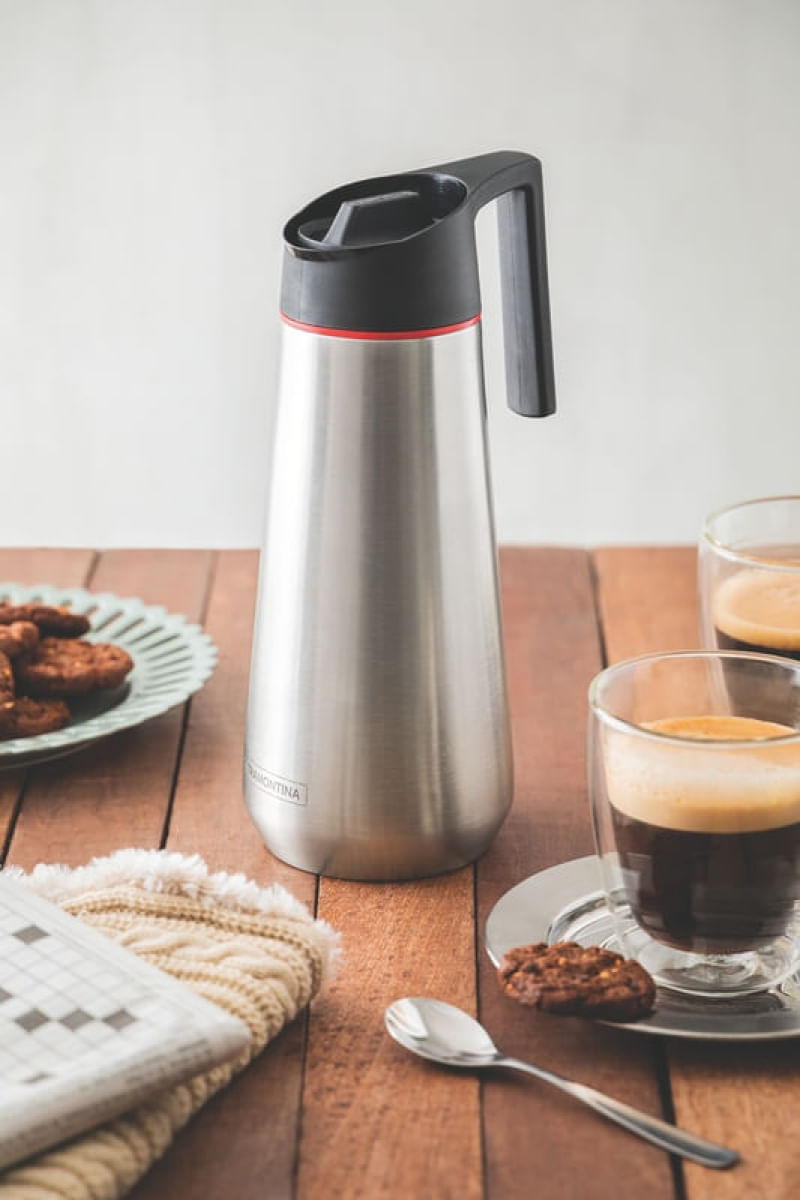 "Com o Bule Térmico Tramontina Exata em Aço Inox 750 ml você terá uma peça charmosa e elegante para seu café, chá ou água. Ele pode ser utilizado para manter líquidos quentes ou frios na temperatura adequada por muito mais tempo. Seu design moderno e clean podem ser combinado com qualquer estilo de cozinha, deixandoa muito mais bonita. Ele é desenvolvido em aço inox com acabamento texturizado fingertip free, o que garante alta resistência, durabilidade e impede marcas de utilização. Com sistema cortapingos embutido e cabo confortável, ele ainda é mais leve e seguro de manusear. Os bules em inox podem ser utilizados para uso doméstico ou comercial. A escolha ideal!Com linhas atemporais e design clean, o bule térmico da linha Exata combina com qualquer estilo e ambiente. Recomendado para servir. Não é indicado para a preparação do café diretamente no bule. Ideal para manter líquidos quentes ou frios na temperatura adequada por muito mais tempo. Uso intuitivo com abertura estilo ""rolha"". Canal que direciona o fluxo da bebida, evitando respingos. Sistema cortapingos embutido. Cabo confortável com toque suave e muito seguro. Acabamento texturizado fingertip free, evitando marcas. Corpo externo e ampola de aço inox. Robusto, simples e moderno, ocupa menos espaço na sua casa e durante o transporte. Praticidade no uso e segurança para toda a família. Seus componentes são BPA free. Leve e fácil de manusear. Higiênico e de fácil limpeza.Orientação GeralAntes do primeiro uso, remova e descarte todos os materiais de embalagem, adesivos e lave o produto Para evitar vazamentos, certifiquese de que a rolha de vedação está bem encaixada no bocal Não coloque o produto em fornos elétricos, microondas, freezers, geladeira, máquina de lavar louças A capacidade volumétrica poderá ter uma variação de até 10% em seu volume nominal indicado. DICAS: recomendamos préaquecer/prérefrigerar seu bule térmico antes de usar. Utilize a capacidade total do bule para uma melhor conservação térmica. Cuidados especiais: Não agite o bule Não deixe o bule cair ou bater Não coloque no bule: gelo seco, refrigerantes (ou bebidas gaseificadas) ou líquidos que possam gerar alta pressão Não coloque bebida quente e em seguida a bebida gelada, ou viceversa Por ser uma garrafa de mesa, recomendase que o transporte deste produto seja sempre feito na posição vertical Após o uso ou limpeza, aconselhamos deixar o bule aberto. Orientações para limpeza: Não use produtos abrasivos, pois eles podem riscar o aço inoxidável Lave somente com detergente neutro e esponja macia Se houver odores desagradáveis ou manchas no interior do bule, podese usar uma solução com a medida de 2 colheres (sopa) de bicarbonato de sódio e água quente (até sua capacidade máxima), e deixe agir por 12 horas após, faça a limpeza diária. Garantia do produto: 90 dias de garantia de acordo com o Código de Defesa do Consumidor + a Garantia do Fabricante"