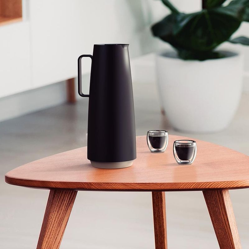 Garanta a temperatura ideal do seu café ou chá, por muito mais tempo, com o Bule Térmico Tramontina Exata em Polipropileno Preto de 1 litro e sirva as bebidas com um toque de elegância e estilo. Ele é feito em polipropileno com ampola de vidro e pode ser utilizado tanto para líquido quentes, quanto frios. Possui design diferenciado com linhas minimalistas e atemporais que oferecem maior estilo a sua mesa e a sua cozinha. Sua abertura é em formato rolha com corta-pingos embutido, e é de uso seguro, leve e muito confortável. Além de todas essas ótimas características, o bule ainda é muito fácil de limpar e prático de usar no dia a dia. Confira agora mesmo e aproveite! Leve já o seu!