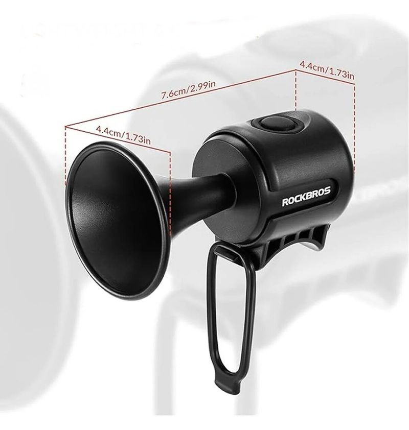 BUZINA ELETRONICA PREMIUM COM MINI CORNETA PRETADescrição do ProdutoCaracterísticas/Atributos:• Materiais: ABS + PC • Volume máximo: 120db • Resistente à água: Tecnologia IPX4 • Bateria Tipo: CR2032 • Peso: aproximadamente 36g• Sobre o Produto• Fácil instalação • Versatilidade forte, volume 120db alto. • Stretch mount: Serve para qualquer bicicleta, fixação com silicone elástico.• Tamanho: 7,6 x 3,6 x 4,4cm