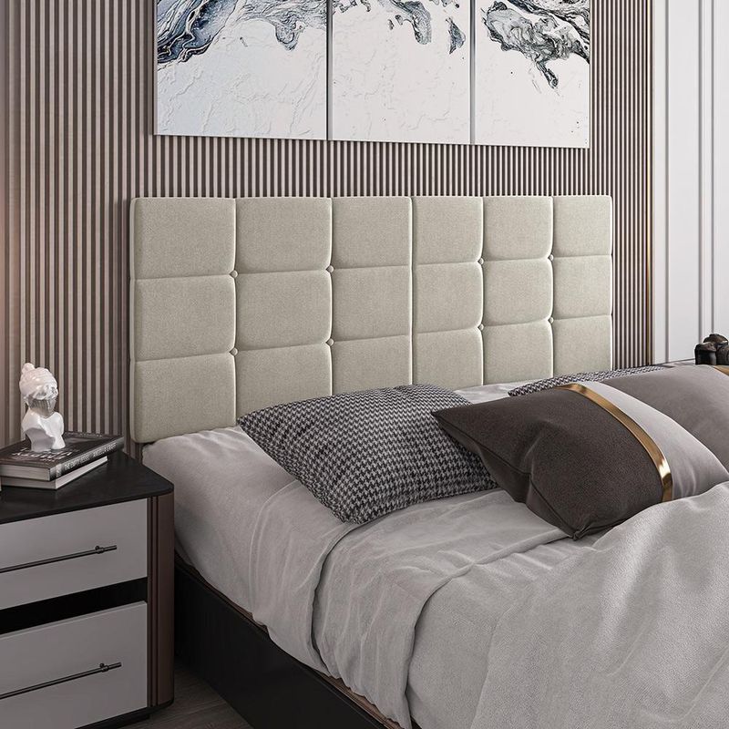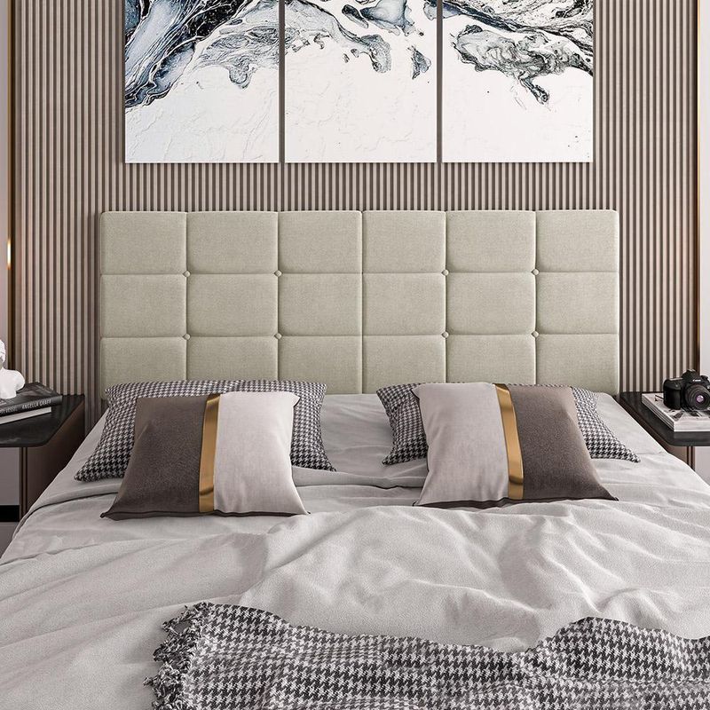 Cabeceira Almofadada Bia - Madeira Suede 90cm Areia - Movelove AreiaA Cabeceira Almofadada Bia é a escolha perfeita para quem deseja adicionar um toque de elegância e conforto ao quarto. Feita em tecido Suede, esta cabeceira é macia ao toque e ideal para quem gosta de ler antes de dormir ou tomar café da manhã na cama. Além disso, o tecido é resistente ao desgaste, luz e umidade, garantindo durabilidade.Características TécnicasDimensões:Comprimento: 90 cmAltura: 55 cmProfundidade: 5 cmPeso: 2 kgMateriais:Estrutura de madeiraInterno de espumaTecido SuedeBenefícios e FuncionalidadesConforto e Praticidade: Estofado macio, ideal para leitura ou refeições na cama.Alta Qualidade: Tecido resistente ao desgaste, luz e umidade.Design Moderno: Acabamento em Suede que adiciona um toque sofisticado ao quarto.Fácil Instalação: Modelo painel dobrável, fixado na parede com suporte e parafusos inclusos.Observações ImportantesImagens: Imagens meramente ilustrativas. Itens de decoração não inclusos.Montagem: A não oferece de montagem. Todos os móveis acompanham manual de montagem.Cuidados: Para limpeza e conservação, utilize apenas um pano seco ou levemente umedecido. Evite produtos abrasivos como álcool, solventes e acetonas.Condições de Uso: Produto não deve ficar exposto diretamente ao sol, calor e umidades excessivas.Conteúdo da Embalagem1 Cabeceira Almofadada Bia1 Kit de montagem1 Manual de instruçõesCabeceira, Almofadada, Bia, Areia, Suede, Conforto, Alta Qualidade, Montagem, Móvel Versátil. Comprimento: 90 cm | Altura: 55 cm | Profundidade: 5 cm | Cor: Areia