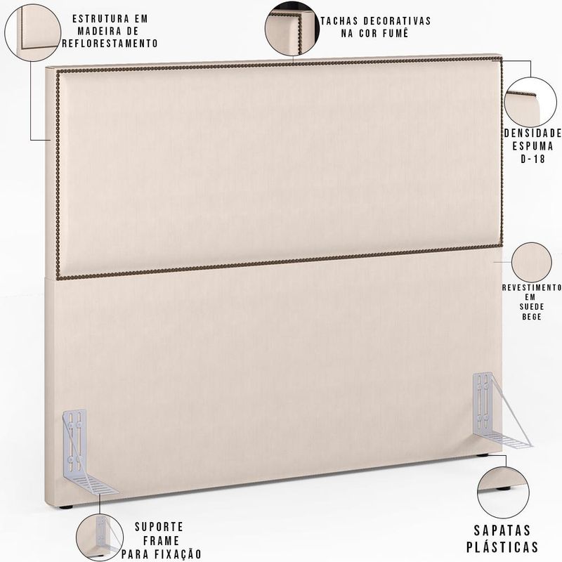 A Cabeceira Box Casal King Com Tachas 195 cm Vicenza L02 Suede Bege- Lyam Decor vai trazer ainda mais elegância ao seu quarto! Todos os detalhes foram pensados para criar uma atmosfera de aconchego e tranquilidade. Produzida com materiais de excelente qualidade e acabamento impecável, o revestimento em Suede combina majestosamente com as tachas decorativas. Pode ser disposta com mesas de cabeceira e apoio, calçadeira ou recamier, valoriza seu ambiente e cria um match perfeito em qualquer composição. Você merece o melhor, garanta já a sua!! Dimensões do produto (L x A x P) 195 x 127 x 8 cm Altura do chão à base: 66 cm Diâmetro da tacha decorativa: 9,5 mm Dimensões do suporte frame (L x A x P) 5,5 x 13,5 x 16,5 cm Características: Estrutura em madeira reflorestada. Revestimento em tecido Suede na cor Bege. Acabamento em fita de tachas de ferro galvanizado, na cor Fumê. Densidade da Espuma D-18. Acompanha todos os acessórios para fixação. Acompanha suporte frame produzido em chapa de ferro com acabamento em esmalte PU na cor alumínio. Possui sapatas plásticas. Características do Frame: Produzido em chapa de ferro 1,5 mm. Acabamento em esmalte PU na cor Alumínio. Acessórios para fixação: 04 Parafusos cabeça chata auto atarraxantes 5,0x25mm e 04 arruelas 1/4. - Por se tratar de estofado as medidas podem ter uma pequena variação de até 3 cm. - A tonalidade do produto real poderá ter ligeira variação devido o lote de tecidos. - A limpeza deve ser feita com pano levemente umedecido em água limpa, sem esfregar, não utilizar produtos abrasivos, desengordurantes, álcool ou solvente. Observações importantes: - Produto para uso residencial em ambiente interno, não devendo ficar exposto diretamente ao sol, calor e umidade excessivos. - Pode haver alguma diferença de tonalidade entre a imagem e o produto real, por conta do tratamento de imagens e a calibração de cores do seu monitor. - As imagens são meramente ilustrativas, não acompanham objetos de decoração e eletrônicos. - Ao receber a mercadoria, o cliente deve verificar as condições da embalagem, caso haja alguma avaria não assine o comprovante de recebimento. - Montagem, desmontagem e outras instalações serão de responsabilidade do cliente. Não nos responsabilizamos, no ato da entrega, por subir escadas/elevadores ou pelo transporte por guincho em apartamentos. Eventuais despesas são de responsabilidade do comprador. - Confira as dimensões do produto e certifique-se de que passará normalmente por supostos elevadores, portas, escadas e/ou corredores de sua residência.