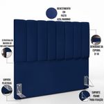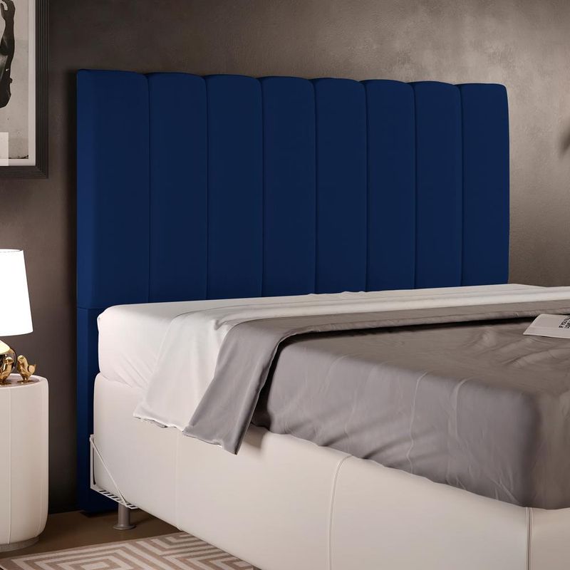 A Cabeceira Para Cama Box Dália é uma peça que traz graciosidade ao quarto. Além de dar um toque clássico, ela traz conforto e deixa o ambiente mais moderno e atrativo. Você pode deixar o quarto mais bonito e funcional compondo ela com uma mesinha de cabeceira, ou uma mesa de apoio ao lado da cama. Detalhes que fazem a diferença! Seus momentos de descansar serão mais agradáveis com um móvel incrível igual a esse em seu quarto. Garanta já á sua! Dimensões da Cabeceira (L x A x P) 140 x 120 x 8 cm Dimensões do Frame (L x A x P) 5,5 x 13,5 x 16,5 cm Características da Cabeceira: Estrutura em madeira reflorestada. Revestimento em tecido sintético Facto Azul Marinho, acabamento fosco. Densidade da Espuma D-18. Acompanha todos os acessórios para fixação. Acompanha suporte frame produzido em chapa de ferro com acabamento em esmalte PU na cor alumínio. Possui sapatas plásticas. Características do Frame: Produzido em chapa de ferro 1,5 mm. Acabamento em esmalte PU na cor Alumínio. Acessórios para fixação: 04 Parafusos cabeça chata auto atarraxantes 5,0x25mm e 04 arruelas 1/4. - Por se tratar de estofado as medidas podem ter uma pequena variação de até 3 cm. - A tonalidade do produto real poderá ter ligeira variação devido o lote de tecidos. Observações importantes: - Produto para uso residencial em ambiente interno, não devendo ficar exposto diretamente ao sol, calor e umidade excessivos. - Pode haver alguma diferença de tonalidade entre a imagem e o produto real, por conta do tratamento de imagens e a calibração de cores do seu monitor. - As imagens são meramente ilustrativas, não acompanham objetos de decoração e eletrônicos. - Ao receber a mercadoria, o cliente deve verificar as condições da embalagem, caso haja alguma avaria não assine o comprovante de recebimento. - Montagem, desmontagem e outras instalações serão de responsabilidade do cliente. Não nos responsabilizamos, no ato da entrega, por subir escadas/elevadores ou pelo transporte por guincho em apartamentos. Eventuais despesas são de responsabilidade do comprador. - Confira as dimensões do produto e certifique-se de que passará normalmente por supostos elevadores, portas, escadas e/ou corredores de sua residência.