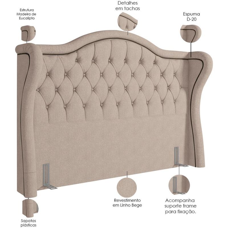 A Cabeceira Cama Box Casal 140 cm P05 Lisboa Linho Bege - Lyam Decor é uma peça singular e elegante. Com design moderno, ela traz destaque e beleza na hora de compor seu quarto. Seus detalhes em tachas, denotam todo o cuidado e carinho na hora da produção. Uma cabeceira que trás presença, beleza e originalidade aos apreciadores do minimalismo, agregando valor aos pequenos detalhes. Com materiais de excelente qualidade e acabamento impecável, o revestimento em Linho combina majestosamente com o restante da mobília. Podendo ser disposta com mesas de cabeceira e apoio, calçadeira ou recamier. É a composição perfeita para os amantes da elegância! Você merece o melhor, garanta já a sua!! Dimensões da Cabeceira (L x A x P) 160 x 150 x 33 cm Características da Cabeceira: Estrutura em madeira de eucalipto. Revestimento em tecido Linho na cor Bege. Densidade da Espuma D-20. Acompanha suporte frame para fixação. Sapatas Plásticas. Botonê revestido. Contorno com tachinhas. - Por se tratar de estofado as medidas podem ter uma pequena variação de até 3 cm. - A tonalidade do produto real poderá ter ligeira variação devido o lote de tecidos. - A limpeza deve ser feita com pano levemente umedecido em água limpa, sem esfregar, não utilizar produtos abrasivos, desengordurantes, álcool ou solvente. Observações importantes: - Produto para uso residencial em ambiente interno, não devendo ficar exposto diretamente ao sol, calor e umidade excessivos. - Pode haver alguma diferença de tonalidade entre a imagem e o produto real, por conta do tratamento de imagens e a calibração de cores do seu monitor. - As imagens são meramente ilustrativas, não acompanham objetos de decoração e eletrônicos. - Ao receber a mercadoria, o cliente deve verificar as condições da embalagem, caso haja alguma avaria não assine o comprovante de recebimento. - Montagem, desmontagem e outras instalações serão de responsabilidade do cliente. Não nos responsabilizamos, no ato da entrega, por subir escadas/elevadores ou pelo transporte por guincho em apartamentos. Eventuais despesas são de responsabilidade do comprador. - Confira as dimensões do produto e certifique-se de que passará normalmente por supostos elevadores, portas, escadas e/ou corredores de sua residência.