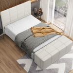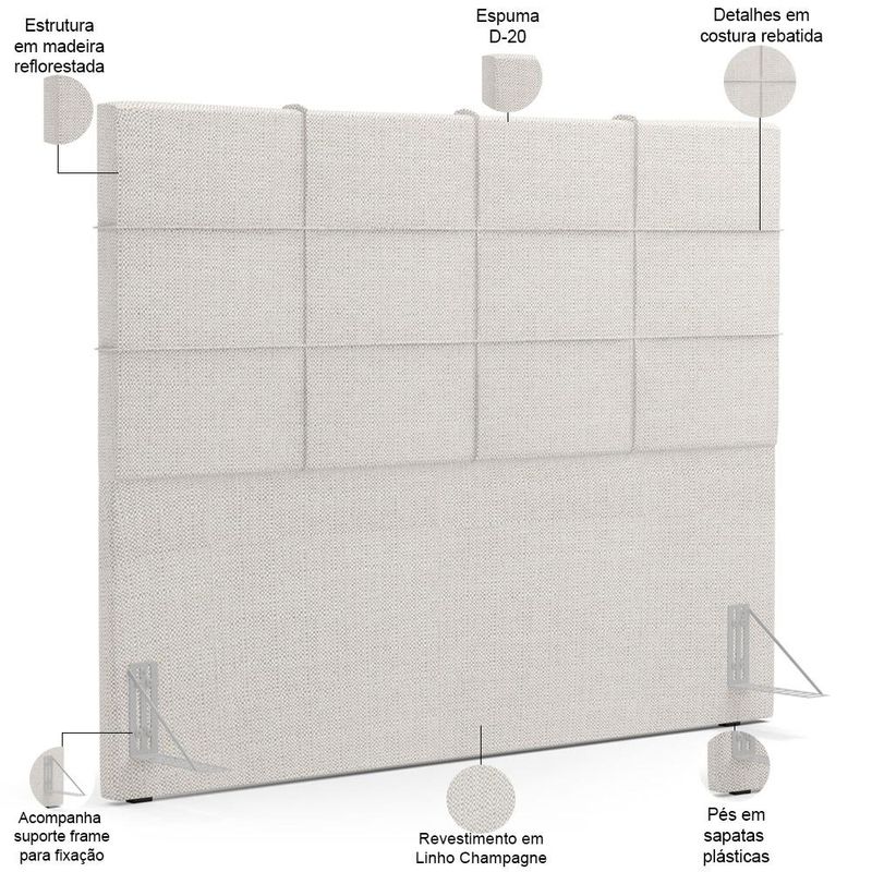A deslumbrante Cabeceira Roma chegou para trazer a comodidade essencial para suas horas de descanso, além disso é um elemento de destaque para qualquer cama, proporcionando não apenas conforto mas também toques de elegância e requinte ao ambiente. Traz consigo um design meticuloso, feita com materiais de alta qualidade, confere um aspecto sofisticado e agradável ao toque, agregando uma textura suave ao ambiente. Vale ressaltar seus detalhes em costura rebatida que trazem o acabamento impecável, sendo assim uma peça de arte que eleva o charme do seu quarto. Seja lendo, assistindo TV ou simplesmente descansando, a superfície estofada lhe proporciona um conforto excepcional! Uma declaração de bom gosto que transforma o seu quarto em um retiro de elegância e serenidade. Garanta já a sua! Dimensões da Cabeceira (L x A x P) 140 x 120 x 8 cm Altura do chão à base: 55 cm Dimensões do Frame (L x A x P) 5,5 x 13,5 x 16,5 cm Características da Cabeceira: Estrutura em Madeira reflorestada. Revestimento em Linho na cor Champagne, com acabamento semi brilho. Estofada com Espuma D-20. Acompanha todos os acessórios para fixação. Pés em sapatas plásticas. Características do Frame: Produzido em chapa de ferro 1,5 mm. Acabamento em esmalte PU na cor Alumínio. Acessórios para fixação: 04 Parafusos cabeça chata auto atarraxantes 5,0x25mm e 04 arruelas 1/4. - Por se tratar de estofado as medidas podem ter uma pequena variação de até 3 cm. - A tonalidade do produto real poderá ter ligeira variação devido o lote de tecidos. - A limpeza deve ser feita com pano levemente umedecido em água limpa, sem esfregar, não utilizar produtos abrasivos, desengordurantes, álcool ou solvente. Observações importantes: - Produto para uso residencial em ambiente interno, não devendo ficar exposto diretamente ao sol, calor e umidade excessivos. - Pode haver alguma diferença de tonalidade entre a imagem e o produto real, por conta do tratamento de imagens e a calibração de cores do seu monitor. - As imagens são meramente ilustrativas, não acompanham objetos de decoração e eletrônicos. - Ao receber a mercadoria, o cliente deve verificar as condições da embalagem, caso haja alguma avaria não assine o comprovante de recebimento. - Montagem, desmontagem e outras instalações serão de responsabilidade do cliente. Não nos responsabilizamos, no ato da entrega, por subir escadas/elevadores ou pelo transporte por guincho em apartamentos. Eventuais despesas são de responsabilidade do comprador. - Confira as dimensões do produto e certifique-se de que passará normalmente por supostos elevadores, portas, escadas e/ou corredores de sua residência.