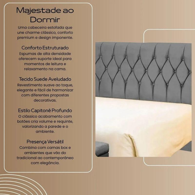 Cabeceira Cama Box Casal 140cm Eloá Estofada Suede Veludo Premium Marrom Cabeceira Eloa: Sofisticação que Abraça Seu DescansoImagine entrar no quarto e ser recebida por uma atmosfera de puro requinte, onde o descanso encontra o design atemporal. A cabeceira Eloa em suede com botões capitonados é mais do que um simples elemento funcional — é um convite diário ao conforto com elegância.Inspirada no estilo Clássico Contemporâneo, ela equilibra com perfeição a imponência das formas tradicionais com a leveza das linhas modernas. Seu estofado em suede traz um toque macio e aveludado ao toque, enquanto o trabalho em capitonê em formato losangular cria uma textura visual que remete ao luxo das antigas boiseries francesas, atualizada para lares sofisticados e acolhedores dos dias de hoje.Ideal para quartos que valorizam o aconchego com estilo, a Eloa se destaca como protagonista do ambiente. Seja acompanhada por roupas de cama neutras ou uma paleta mais ousada, ela harmoniza com múltiplos cenários decorativos, do contemporâneo ao glam.Transforme seu quarto num verdadeiro refúgio de elegância. A cabeceira Eloa não apenas sustenta sua cama — ela sustenta sonhos. ESPECIFICAÇÕESEstrutura: Madeira de Eucalipto Reflorestada;Espuma: D-23;Modelo dos Pés: pés em material polímero de alta resistência ;Grampos: de aço galvanizados;Revestimento: Tecido Suede Veludo;DIMENSÕES DA CABECEIRAAltura total: 128cm;Largura total: 140cm;Profundidade total: 12cm;Peso: 20kg;EXCELÊNCIA EM CADA DETALHENa Divani, qualidade não é promessa — é prática diária. Por isso, cada móvel passa por testes rigorosos que avaliam desde a estrutura em madeira até a precisão da costura e o acabamento da tapeçaria. Mas, mesmo com todo esse cuidado, sabemos que imprevistos podem acontecer. Se dentro de 90 dias após a entrega você identificar algum defeito de fabricação ou dano ocasionado no transporte, nossa equipe de suporte está pronta para atender você com empatia, agilidade e eficiência. Garantimos não apenas um produto de alto padrão, mas também um pós-venda humano, dedicado a manter sua experiência Divani à altura do que ela merece ser: impecável.SOBRE A DIVANINascida em Arapongas, o coração pulsante do maior polo moveleiro do Sul do Brasil, a Divani é fruto de uma história familiar movida pela paixão por design e sofisticação. Em meio a um cenário onde a excelência da matéria-prima encontra o talento de uma mão de obra altamente qualificada, criamos mais do que móveis: entregamos experiências. Cada peça carrega o compromisso com o conforto, a estética refinada e o desejo genuíno de transformar ambientes em refúgios de bem-estar. Acreditamos que o lar é uma extensão da alma – e é por isso que, desde a origem, cultivamos o cuidado artesanal e o olhar atento às tendências internacionais. Divani é onde o requinte encontra propósito, e o design ganha calor humano.CUIDADOS COM A LIMPEZAUtilizar um pano limpo e seco. Não limpar com produtos abrasivos ou escovas. Não deixar exposta à luz do sol diretamente pois isso irá diminuir a vida útil do produto, fazendo-o envelhecer precocemente. Este produto não é recomendado para ambientes externos onde possa receber chuva.INFORMAÇÕES IMPORTANTES- Todos os produtos vão embalados com total segurança;- A entrega do produto é realizada em todo território nacional, até onde as rodovias alcançam, entregas fluviais ou aéreas devem ser cotadas à parte;- Objetos decorativos que aparecem na foto não acompanham o produto;- Pode haver alguma diferença de tonalidade entre a imagem e o produto real, por conta do tratamento de imagens e a calibração de cores do seu monitor;- Por se tratar de estofado as medidas podem ter uma pequena variação em até 3 cm;- Confira as dimensões do produto e certifique-se de que passará normalmente por supostos elevadores, portas, escadas e/ou corredores de sua residência, já que nossa entrega não inclui a subida de lances de escada, ou o lançamento de produtos;- Ao receber a mercadoria, o cliente deve verificar as condições da embalagem, caso haja alguma avaria não assine o comprovante de recebimento;- Observando as orientações acima, evita-se futuros desagrados ou imprevistos com a entrega do produto. Havendo despesas adicionais, serão de responsabilidade do cliente.