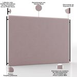 A Cabeceira Estofada Goya, é o mobiliário perfeito para transformar seu quarto em um refúgio de conforto e sofisticação. Projetada para aliar funcionalidade e beleza, essa cabeceira estofada serve desde suporte para cabeça e costas ao apoiar-se durante uma leitura cama, como também protege a parede contra marcas, além de levar muito estilo ao quarto de casal, que cá para nós, precisa ser um ambiente aconchegante e que expresse a personalidade do casal. Por isso, a cabeceira Goya conta com um design inovador, com linhas minimalistas, enquanto as hastes laterais em aço carbono remetem ao estilo industrial. Para completar, é fabricada com madeira reflorestada, além do tratamento contra mofo e cupim, garantindo a durabilidade e qualidade exclusiva que você procura. Já a espuma D-20 fornece conforto e maciez. Transforme seu quarto de casal em um ambiente acolhedor com essa cabeceira deslumbrante. Não perca tempo, compre agora mesmo a Cabeceira Goya e tenha noites de sono tranquilas e com muito estilo. Dimensões da Cabeceira (L x A x P) 158 x 130 x 10 cm Características da Cabeceira: Estrutura em madeira de reflorestamento (pinus, eucaliptos e placas de MDF) com imunização contra mofo, cupim e micro-organismos. Revestimento em Veludo na cor Rosê. Parte traseira revestida em Kami. Densidade da Espuma D-20. Laterais com hastes decorativas em aço carbono na cor preto fosco. Possui sapatas plásticas. Cabeceira compatível com cama box casal padrão 140cm. - Por se tratar de estofado as medidas podem ter uma pequena variação de até 3 cm. - A tonalidade do produto real poderá ter ligeira variação devido o lote de tecidos. - A limpeza deve ser feita com pano levemente umedecido em água limpa, sem esfregar, não utilizar produtos abrasivos, desengordurantes, álcool ou solvente. Observações importantes: - Produto para uso residencial em ambiente interno, não devendo ficar exposto diretamente ao sol, calor e umidade excessivos. - Pode haver alguma diferença de tonalidade entre a imagem e o produto real, por conta do tratamento de imagens e a calibração de cores do seu monitor. - As imagens são meramente ilustrativas, não acompanham objetos de decoração e eletrônicos. - Ao receber a mercadoria, o cliente deve verificar as condições da embalagem, caso haja alguma avaria não assine o comprovante de recebimento. - Montagem, desmontagem e outras instalações serão de responsabilidade do cliente. Não nos responsabilizamos, no ato da entrega, por subir escadas/elevadores ou pelo transporte por guincho em apartamentos. Eventuais despesas são de responsabilidade do comprador. - Confira as dimensões do produto e certifique-se de que passará normalmente por supostos elevadores, portas, escadas e/ou corredores de sua residência.