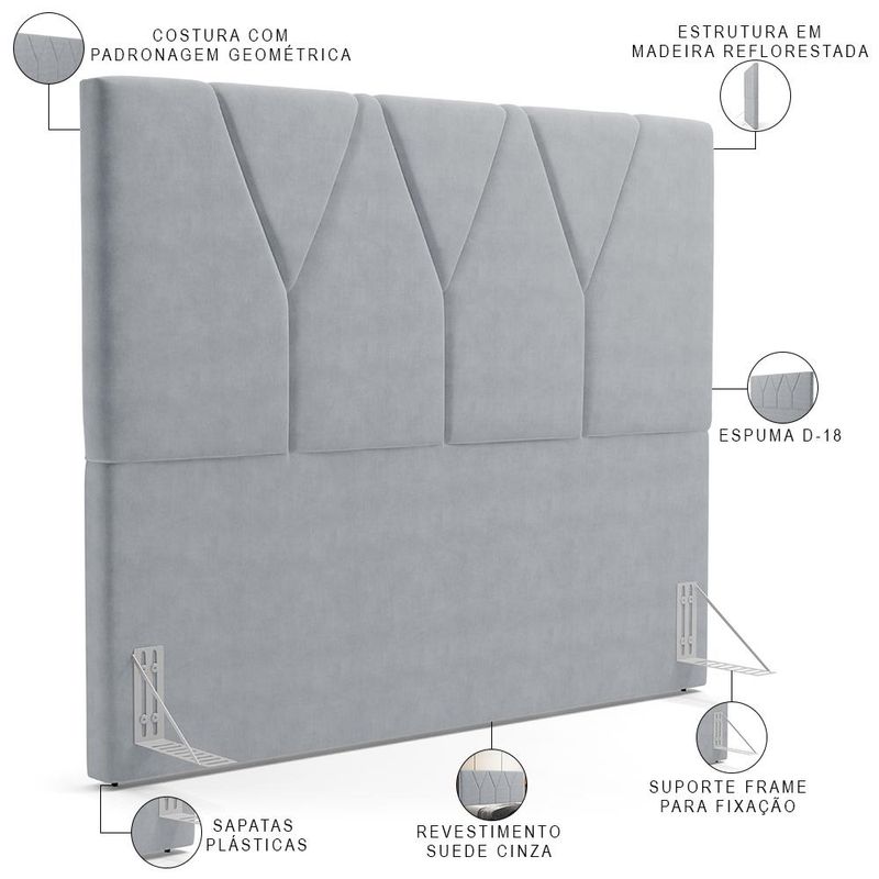 Poder desfrutar de momentos de paz e tranquilidade em nosso lar é imprescindível para mantermos um equilíbrio mental e físico e conseguirmos de fato descansar e nos desconectar um pouco da rotina caótica que vivemos hoje. Pensando nisso, a decoração é ponto chave na transformação do ambiente e a Cabeceira Cama Box Casal King 195 cm Aurora W01 Suede Cinza - Lyam Decor vem para proporcionar ainda mais sensações de conforto ao seu quarto. Confeccionada com materiais de qualidade excepcional, é estofada e possui costura de padronagem geométrica em seu revestimento, que imprime bastante modernidade, além de criar um match incrível com outros móveis como mesa de cabeceira, calçadeira ou recamier. Você merece o melhor, garanta já a sua! Dimensões da Cabeceira (L x A x P) 195 x 120 x 8 cm Altura do chão à base: 55 cm Dimensões do Frame (L x A x P) 5,5 x 13,5 x 16,5 cm Características da Cabeceira: Estrutura em madeira reflorestada. Revestimento em tecido Suede na cor Cinza. Densidade da Espuma D-18. Acompanha todos os acessórios para fixação. Possui sapatas plásticas. Características do Frame: Produzido em chapa de ferro 1,5 mm. Acabamento em esmalte PU na cor Alumínio. Acessórios para fixação: 04 Parafusos cabeça chata auto atarraxantes 5,0x25mm e 04 arruelas 1/4. - Por se tratar de estofado as medidas podem ter uma pequena variação de até 3 cm. - A tonalidade do produto real poderá ter ligeira variação devido o lote de tecidos. - A limpeza deve ser feita com pano levemente umedecido em água limpa, sem esfregar, não utilizar produtos abrasivos, desengordurantes, álcool ou solvente. Observações importantes: - Produto para uso residencial em ambiente interno, não devendo ficar exposto diretamente ao sol, calor e umidade excessivos. - Pode haver alguma diferença de tonalidade entre a imagem e o produto real, por conta do tratamento de imagens e a calibração de cores do seu monitor. - As imagens são meramente ilustrativas, não acompanham objetos de decoração e eletrônicos. - Ao receber a mercadoria, o cliente deve verificar as condições da embalagem, caso haja alguma avaria não assine o comprovante de recebimento. - Montagem, desmontagem e outras instalações serão de responsabilidade do cliente. Não nos responsabilizamos, no ato da entrega, por subir escadas/elevadores ou pelo transporte por guincho em apartamentos. Eventuais despesas são de responsabilidade do comprador. - Confira as dimensões do produto e certifique-se de que passará normalmente por supostos elevadores, portas, escadas e/ou corredores de sua residência.