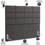 A deslumbrante Cabeceira Roma chegou para trazer a comodidade essencial para suas horas de descanso, além disso é um elemento de destaque para qualquer cama, proporcionando não apenas conforto mas também toques de elegância e requinte ao ambiente. Traz consigo um design meticuloso, feita com materiais de alta qualidade, confere um aspecto sofisticado e agradável ao toque, agregando uma textura suave ao ambiente. Vale ressaltar seus detalhes em costura rebatida que trazem o acabamento impecável, sendo assim uma peça de arte que eleva o charme do seu quarto. Seja lendo, assistindo TV ou simplesmente descansando, a superfície estofada lhe proporciona um conforto excepcional! Uma declaração de bom gosto que transforma o seu quarto em um retiro de elegância e serenidade. Garanta já a sua! Dimensões da Cabeceira (L x A x P) 195 x 120 x 8 cm Altura do chão à base: 55 cm Dimensões do Frame (L x A x P) 5,5 x 13,5 x 16,5 cm Características da Cabeceira: Estrutura em Madeira reflorestada. Revestimento em Linho na cor Cinza Escuro, com acabamento semi brilho. Estofada com Espuma D-20. Acompanha todos os acessórios para fixação. Pés em sapatas plásticas. Características do Frame: Produzido em chapa de ferro 1,5 mm. Acabamento em esmalte PU na cor Alumínio. Acessórios para fixação: 04 Parafusos cabeça chata auto atarraxantes 5,0x25mm e 04 arruelas 1/4. - Por se tratar de estofado as medidas podem ter uma pequena variação de até 3 cm. - A tonalidade do produto real poderá ter ligeira variação devido o lote de tecidos. - A limpeza deve ser feita com pano levemente umedecido em água limpa, sem esfregar, não utilizar produtos abrasivos, desengordurantes, álcool ou solvente. Observações importantes: - Produto para uso residencial em ambiente interno, não devendo ficar exposto diretamente ao sol, calor e umidade excessivos. - Pode haver alguma diferença de tonalidade entre a imagem e o produto real, por conta do tratamento de imagens e a calibração de cores do seu monitor. - As imagens são meramente ilustrativas, não acompanham objetos de decoração e eletrônicos. - Ao receber a mercadoria, o cliente deve verificar as condições da embalagem, caso haja alguma avaria não assine o comprovante de recebimento. - Montagem, desmontagem e outras instalações serão de responsabilidade do cliente. Não nos responsabilizamos, no ato da entrega, por subir escadas/elevadores ou pelo transporte por guincho em apartamentos. Eventuais despesas são de responsabilidade do comprador. - Confira as dimensões do produto e certifique-se de que passará normalmente por supostos elevadores, portas, escadas e/ou corredores de sua residência.