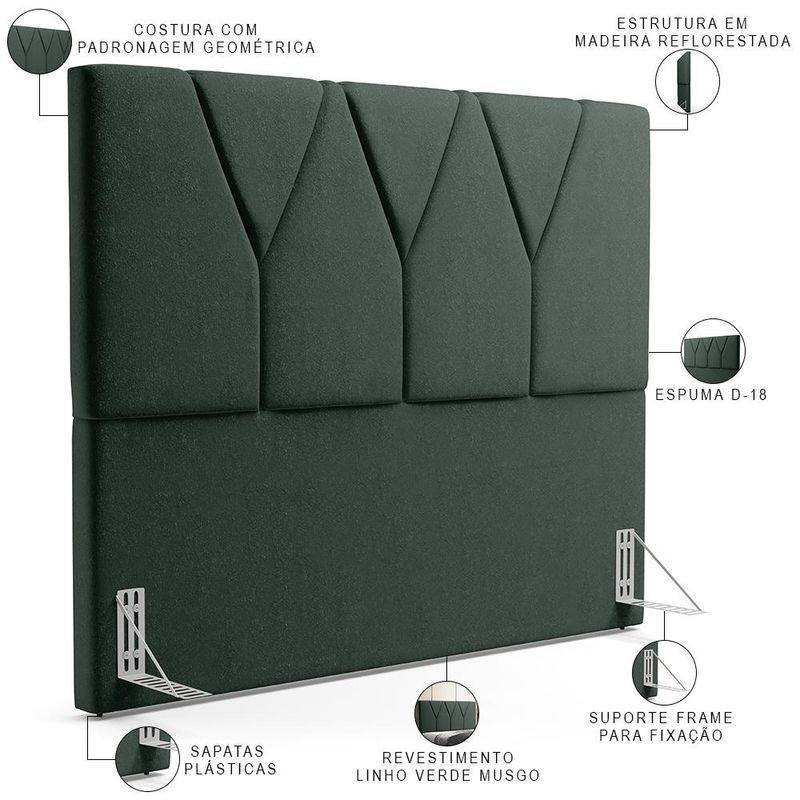 Poder desfrutar de momentos de paz e tranquilidade em nosso lar é imprescindível para mantermos um equilíbrio mental e físico e conseguirmos de fato descansar e nos desconectar um pouco da rotina caótica que vivemos hoje. Pensando nisso, a decoração é ponto chave na transformação do ambiente e a Cabeceira Cama Box Casal Queen 160 cm Aurora W01 Linho Verde Musgo - Lyam Decor vem para proporcionar ainda mais sensações de conforto ao seu quarto. Confeccionada com materiais de qualidade excepcional, é estofada e possui costura de padronagem geométrica em seu revestimento, que imprime bastante modernidade, além de criar um match incrível com outros móveis como mesa de cabeceira, calçadeira ou recamier. Você merece o melhor, garanta já a sua! Dimensões da Cabeceira (L x A x P) 160 x 120 x 8 cm Altura do chão à base: 55 cm Dimensões do Frame (L x A x P) 5,5 x 13,5 x 16,5 cm Características da Cabeceira: Estrutura em madeira reflorestada. Revestimento em tecido Linho na cor Verde Musgo. Densidade da Espuma D-18. Acompanha todos os acessórios para fixação. Possui sapatas plásticas. Características do Frame: Produzido em chapa de ferro 1,5 mm. Acabamento em esmalte PU na cor Alumínio. Acessórios para fixação: 04 Parafusos cabeça chata auto atarraxantes 5,0x25mm e 04 arruelas 1/4. - Por se tratar de estofado as medidas podem ter uma pequena variação de até 3 cm. - A tonalidade do produto real poderá ter ligeira variação devido o lote de tecidos. - A limpeza deve ser feita com pano levemente umedecido em água limpa, sem esfregar, não utilizar produtos abrasivos, desengordurantes, álcool ou solvente. Observações importantes: - Produto para uso residencial em ambiente interno, não devendo ficar exposto diretamente ao sol, calor e umidade excessivos. - Pode haver alguma diferença de tonalidade entre a imagem e o produto real, por conta do tratamento de imagens e a calibração de cores do seu monitor. - As imagens são meramente ilustrativas, não acompanham objetos de decoração e eletrônicos. - Ao receber a mercadoria, o cliente deve verificar as condições da embalagem, caso haja alguma avaria não assine o comprovante de recebimento. - Montagem, desmontagem e outras instalações serão de responsabilidade do cliente. Não nos responsabilizamos, no ato da entrega, por subir escadas/elevadores ou pelo transporte por guincho em apartamentos. Eventuais despesas são de responsabilidade do comprador. - Confira as dimensões do produto e certifique-se de que passará normalmente por supostos elevadores, portas, escadas e/ou corredores de sua residência.