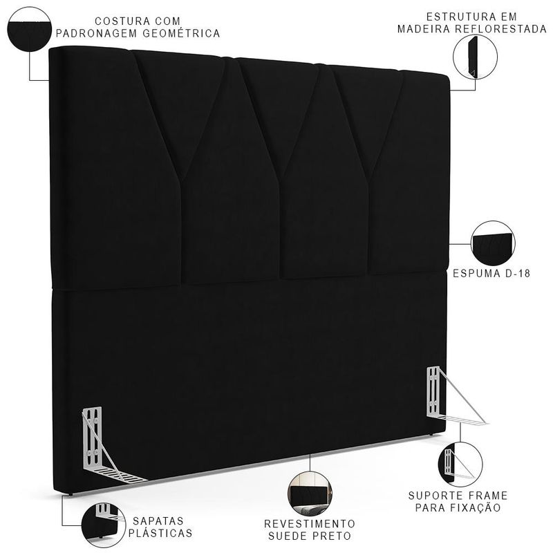 Poder desfrutar de momentos de paz e tranquilidade em nosso lar é imprescindível para mantermos um equilíbrio mental e físico e conseguirmos de fato descansar e nos desconectar um pouco da rotina caótica que vivemos hoje. Pensando nisso, a decoração é ponto chave na transformação do ambiente e a Cabeceira Cama Box Casal Queen 160 cm Aurora W01 Suede Preto - Lyam Decor vem para proporcionar ainda mais sensações de conforto ao seu quarto. Confeccionada com materiais de qualidade excepcional, é estofada e possui costura de padronagem geométrica em seu revestimento, que imprime bastante modernidade, além de criar um match incrível com outros móveis como mesa de cabeceira, calçadeira ou recamier. Você merece o melhor, garanta já a sua! Dimensões da Cabeceira (L x A x P) 160 x 120 x 8 cm Altura do chão à base: 55 cm Dimensões do Frame (L x A x P) 5,5 x 13,5 x 16,5 cm Características da Cabeceira: Estrutura em madeira reflorestada. Revestimento em tecido Suede na cor Preto. Densidade da Espuma D-18. Acompanha todos os acessórios para fixação. Possui sapatas plásticas. Características do Frame: Produzido em chapa de ferro 1,5 mm. Acabamento em esmalte PU na cor Alumínio. Acessórios para fixação: 04 Parafusos cabeça chata auto atarraxantes 5,0x25mm e 04 arruelas 1/4. - Por se tratar de estofado as medidas podem ter uma pequena variação de até 3 cm. - A tonalidade do produto real poderá ter ligeira variação devido o lote de tecidos. - A limpeza deve ser feita com pano levemente umedecido em água limpa, sem esfregar, não utilizar produtos abrasivos, desengordurantes, álcool ou solvente. Observações importantes: - Produto para uso residencial em ambiente interno, não devendo ficar exposto diretamente ao sol, calor e umidade excessivos. - Pode haver alguma diferença de tonalidade entre a imagem e o produto real, por conta do tratamento de imagens e a calibração de cores do seu monitor. - As imagens são meramente ilustrativas, não acompanham objetos de decoração e eletrônicos. - Ao receber a mercadoria, o cliente deve verificar as condições da embalagem, caso haja alguma avaria não assine o comprovante de recebimento. - Montagem, desmontagem e outras instalações serão de responsabilidade do cliente. Não nos responsabilizamos, no ato da entrega, por subir escadas/elevadores ou pelo transporte por guincho em apartamentos. Eventuais despesas são de responsabilidade do comprador. - Confira as dimensões do produto e certifique-se de que passará normalmente por supostos elevadores, portas, escadas e/ou corredores de sua residência.