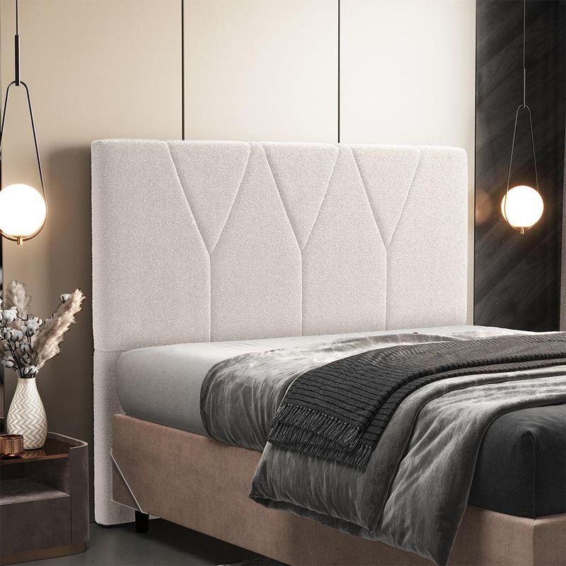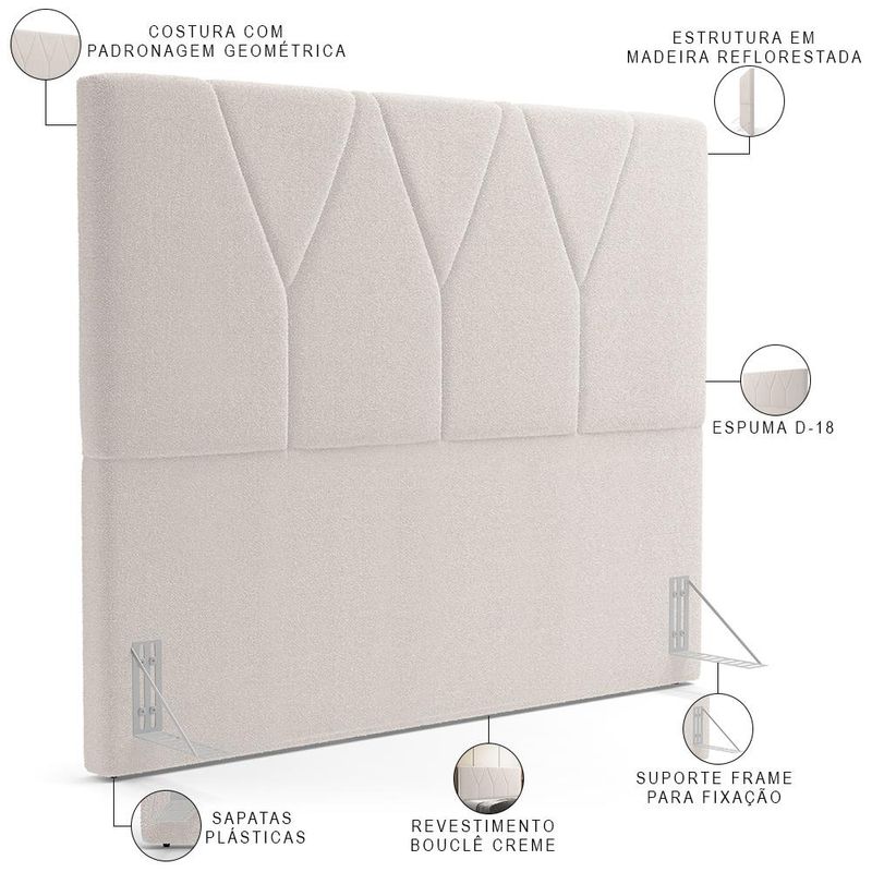 Poder desfrutar de momentos de paz e tranquilidade em nosso lar é imprescindível para mantermos um equilíbrio mental e físico e conseguirmos de fato descansar e nos desconectar um pouco da rotina caótica que vivemos hoje. Pensando nisso, a decoração é ponto chave na transformação do ambiente e a Cabeceira Cama Box Casal Queen 160 cm Aurora W01 Bouclê Creme - Lyam Decor vem para proporcionar ainda mais sensações de conforto ao seu quarto. Confeccionada com materiais de qualidade excepcional, é estofada e possui costura de padronagem geométrica em seu revestimento, que imprime bastante modernidade, além de criar um match incrível com outros móveis como mesa de cabeceira, calçadeira ou recamier. Você merece o melhor, garanta já a sua! Dimensões da Cabeceira (L x A x P) 160 x 120 x 8 cm Altura do chão à base: 55 cm Dimensões do Frame (L x A x P) 5,5 x 13,5 x 16,5 cm Características da Cabeceira: Estrutura em madeira reflorestada. Revestimento em tecido Bouclê na cor Creme. Densidade da Espuma D-18. Acompanha todos os acessórios para fixação. Possui sapatas plásticas. Características do Frame: Produzido em chapa de ferro 1,5 mm. Acabamento em esmalte PU na cor Alumínio. Acessórios para fixação: 04 Parafusos cabeça chata auto atarraxantes 5,0x25mm e 04 arruelas 1/4. - Por se tratar de estofado as medidas podem ter uma pequena variação de até 3 cm. - A tonalidade do produto real poderá ter ligeira variação devido o lote de tecidos. - A limpeza deve ser feita com pano levemente umedecido em água limpa, sem esfregar, não utilizar produtos abrasivos, desengordurantes, álcool ou solvente. Observações importantes: - Produto para uso residencial em ambiente interno, não devendo ficar exposto diretamente ao sol, calor e umidade excessivos. - Pode haver alguma diferença de tonalidade entre a imagem e o produto real, por conta do tratamento de imagens e a calibração de cores do seu monitor. - As imagens são meramente ilustrativas, não acompanham objetos de decoração e eletrônicos. - Ao receber a mercadoria, o cliente deve verificar as condições da embalagem, caso haja alguma avaria não assine o comprovante de recebimento. - Montagem, desmontagem e outras instalações serão de responsabilidade do cliente. Não nos responsabilizamos, no ato da entrega, por subir escadas/elevadores ou pelo transporte por guincho em apartamentos. Eventuais despesas são de responsabilidade do comprador. - Confira as dimensões do produto e certifique-se de que passará normalmente por supostos elevadores, portas, escadas e/ou corredores de sua residência.