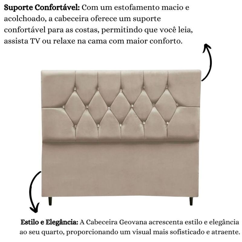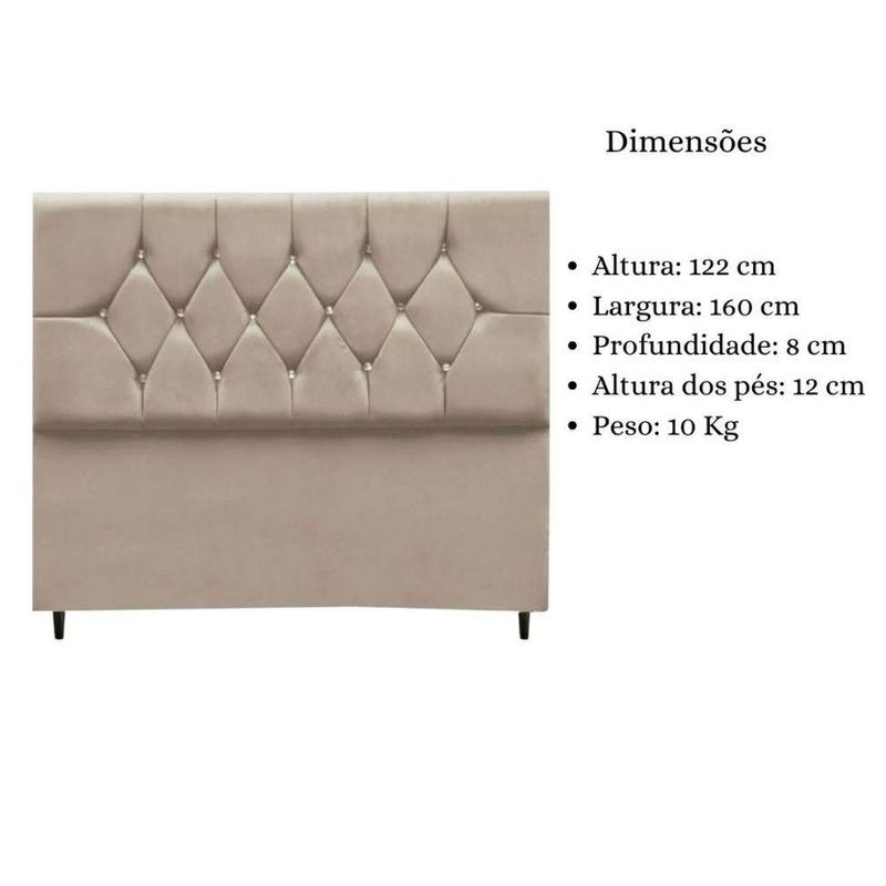 Cabeceira Cama Box Estofada Queen 160 Cm Geovana Suede BegeApresentamos a deslumbrante Cabeceira Cama Box Estofada Queen 160 cm Geovana Suede, disponível para venda em um padrão exclusivo! Esta cabeceira é a combinação perfeita de elegância, conforto e estilo para o seu quarto.Dimensões:Altura: 122 cmLargura: 160 cmProfundidade: 8 cmAltura dos pés: 12 cmPeso: 10 KgCom dimensões imponentes, possui uma altura de 122 cm que cria uma presença marcante e luxuosa no ambiente. A largura de 160 cm oferece uma cobertura ideal para camas queen size, garantindo um visual harmonioso e sofisticado. Com apenas 8 cm de profundidade, a cabeceira se encaixa perfeitamente na estrutura da cama, proporcionando um acabamento impecável.O estofamento em suede é um convite ao toque suave e aconchegante. A cor e textura do suede proporcionam uma sensação de conforto e agradabilidade, tornando-se o lugar perfeito para apoiar-se enquanto lê um livro ou assiste a um filme relaxante.Os detalhes em capitonê com strass são o elemento de destaque dessa cabeceira. Os botões delicados com strass são cuidadosamente dispostos em uma padronagem de capitonê, acrescentando um toque de glamour e sofisticação. Esses detalhes decorativos conferem um brilho sutil e elegante, transformando a cabeceira em uma peça única e especial.A cabeceira também conta com pés com altura de 12 cm, que oferecem estabilidade e segurança para a estrutura. Apesar de seu visual impressionante, a cabeceira tem um peso leve de apenas 10 kg, o que facilita sua movimentação e ajuste conforme necessário.A Cabeceira Cama Box Estofada Queen 160 cm Geovana Suede, com seus detalhes em capitonê strass, é a escolha perfeita para quem busca adicionar estilo, conforto e um toque de luxo ao quarto. Seu design impecável, aliado aos materiais de alta qualidade, proporciona uma experiência excepcional de descanso e transforma seu quarto em um ambiente acolhedor e elegante. Aproveite essa oportunidade única e adquira essa peça deslumbrante para o seu quarto agora mesmo!Especificações do ProdutoEstrutura: Madeira EucaliptoTecido: SuedeMaterial dos pés: Madeira EucaliptoBotões: StrassInstalação: Não acompanha kit frame para fixação na cama box, o produto ficará apoiado entre a cama e paredeGarantia: 90 dias contra defeito de fabricaçãoMontagem: O produto vai montado, necessitando apenas rosquear os pés (2)Instruções de Limpeza: Utilizar um pano limpo e levemente úmidoVocê irá receber: 01 volumeObservações RelevantesProduto para uso residencial em ambiente interno, não devendo ficar exposto diretamente ao sol, calor e umidades excessivas.Pode haver alguma diferença de tonalidade entre a imagem e o produto real, por conta do tratamento de imagens e a calibração de cores do seu monitor.Para futuras compras, não garantimos a mesma tonalidade de cor, pois existe variação a cada lote do fabricante do tecido.As imagens são meramente ilustrativas, não acompanham objetos de decoração e eletros.Confira as dimensões do produto no momento da compra e certifique-se de que passará normalmente por escadas, elevadores, portas e corredores.Cabeceira Estofada Queen 160 cm Geovana Suede: Elegância e Conforto em um Só Produto!Transforme Seu Quarto com a Cabeceira Estofada Queen 160 cm Geovana SuedeAdicione Sofisticação com a Cabeceira Estofada Queen 160 cm Geovana SuedeCabeceira Queen 160 cm Geovana Suede: Estilo e Conforto ao Seu AlcanceValorize Seu Quarto com a Cabeceira Estofada Queen 160 cm Geovana SuedeCabeceira Cama Box Queen 160 cm Geovana Suede: Toque de Luxo para o Seu QuartoEleve o Visual do Seu Quarto com a Cabeceira Estofada Queen 160 cm Geovana SuedeCabeceira Queen 160 cm Geovana Suede: O Detalhe que Faz a DiferençaSua Nova Cabeceira Estofada: Queen 160 cm Geovana SuedeCabeceira Estofada Queen 160 cm Geovana Suede: Conforto e Estilo em Um Único ProdutoA Cabeceira Perfeita para Sua Cama Queen: 160 cm Geovana SuedeSofisticação e Elegância com a Cabeceira Estofada Queen 160 cm Geovana SuedeRealce Seu Quarto com a Cabeceira Queen 160 cm Geovana SuedeCabeceira Estofada Queen 160 cm Geovana Suede: O Toque Final para Seu QuartoAdorne Seu Quarto com a Cabeceira Queen 160 cm Geovana Suede