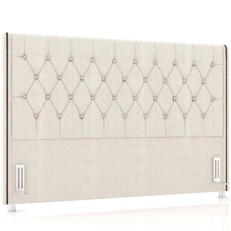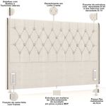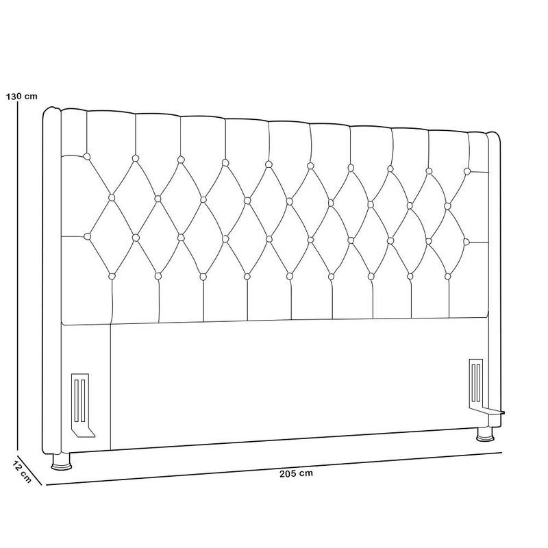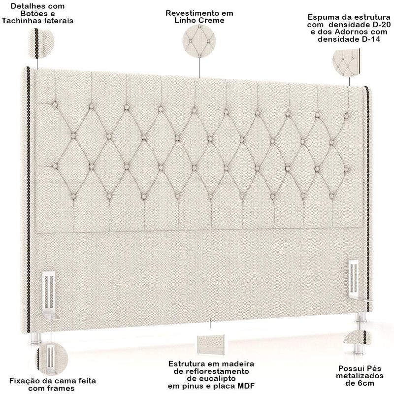Chega de um quarto sem graça. Adicione um toque clássico ao seu ambiente com a Cabeceira Estofada Frizza , da Lyam Decor. Com um design atemporal e sofisticado, essa cabeceira conta com detalhes que agregam muito mais charme como, por exemplo, o padrão dos adornos em botonê e as tachinhas laterais que emolduram a beleza dessa peça, ou seja, uma cabeceira para cama box que vai transformar seu quarto casal em um espaço luxuoso e aconchegante. Mas não somente de beleza se faz uma cabeceira, por isso, garantimos a qualidade, uma vez que é confeccionada com madeira de reflorestamento, além de receber tratamento contra mofo e cupins, para que você tenha um mobiliário durável e resistente. Para completar, os pés metalizados adicionam um charme extra e, ainda, evita o contato direto com o chão e umidade. Demais não é mesmo?! Deixe-se envolver pelo conforto e tenha noites de sono relaxantes e aconchegantes com a Cabeceira Casal Frizza. Você terá um visual impressionante aliado à funcionalidade excepcional! Dimensões da Cabeceira (L x A x P) 205 x 130 x 12 cm Características da Cabeceira: Estrutura em madeira de reflorestamento (pinus, eucaliptos e placas de MDF) com imunização contra mofo, cupim e micro-organismos. Revestimento em tecido Linho de alta qualidade na cor Creme. Parte traseira revestida em Kami. Espuma da estrutura com densidade D-20 e dos adornos com densidade D-14. Fixação da cama feita com frames. Possui Pés metalizados de 6cm. Detalhes com botões e tachinhas laterais. Cabeceira compatível com cama box casal king 193cm. - Por se tratar de estofado as medidas podem ter uma pequena variação de até 3 cm. - A tonalidade do produto real poderá ter ligeira variação devido o lote de tecidos. - A limpeza deve ser feita com pano levemente umedecido em água limpa, sem esfregar, não utilizar produtos abrasivos, desengordurantes, álcool ou solvente. Observações importantes: - Produto para uso residencial em ambiente interno, não devendo ficar exposto diretamente ao sol, calor e umidade excessivos. - Pode haver alguma diferença de tonalidade entre a imagem e o produto real, por conta do tratamento de imagens e a calibração de cores do seu monitor. - As imagens são meramente ilustrativas, não acompanham objetos de decoração e eletrônicos. - Ao receber a mercadoria, o cliente deve verificar as condições da embalagem, caso haja alguma avaria não assine o comprovante de recebimento. - Montagem, desmontagem e outras instalações serão de responsabilidade do cliente. Não nos responsabilizamos, no ato da entrega, por subir escadas/elevadores ou pelo transporte por guincho em apartamentos. Eventuais despesas são de responsabilidade do comprador. - Confira as dimensões do produto e certifique-se de que passará normalmente por supostos elevadores, portas, escadas e/ou corredores de sua residência.