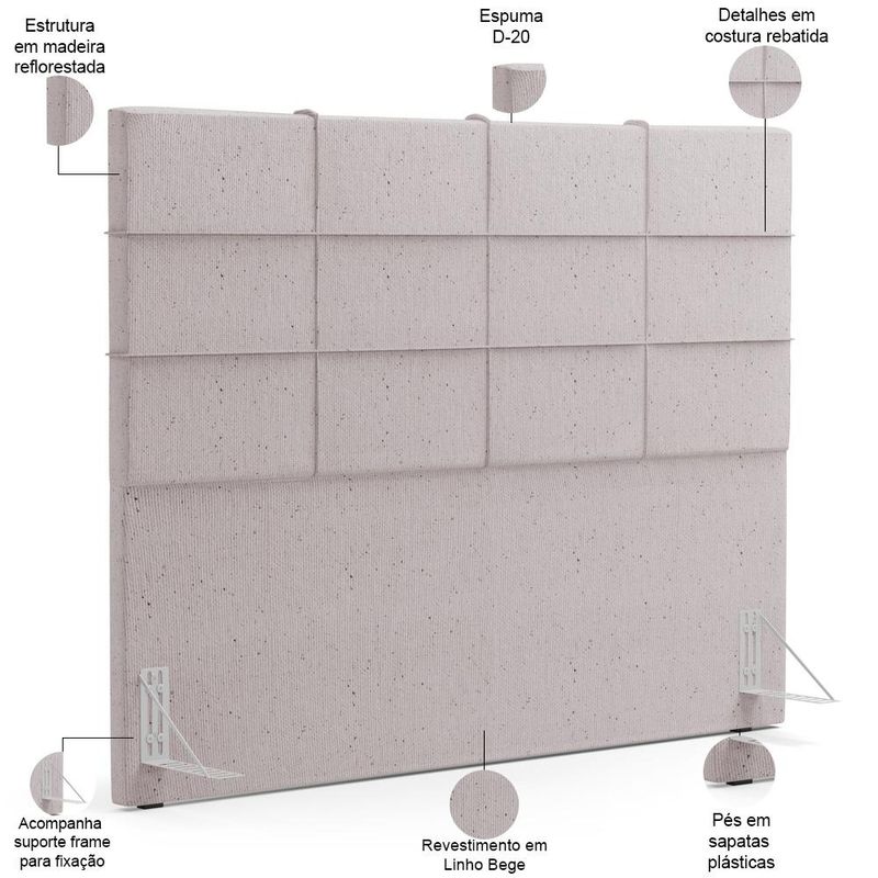 A deslumbrante Cabeceira Roma chegou para trazer a comodidade essencial para suas horas de descanso, além disso é um elemento de destaque para qualquer cama, proporcionando não apenas conforto mas também toques de elegância e requinte ao ambiente. Traz consigo um design meticuloso, feita com materiais de alta qualidade, confere um aspecto sofisticado e agradável ao toque, agregando uma textura suave ao ambiente. Vale ressaltar seus detalhes em costura rebatida que trazem o acabamento impecável, sendo assim uma peça de arte que eleva o charme do seu quarto. Seja lendo, assistindo TV ou simplesmente descansando, a superfície estofada lhe proporciona um conforto excepcional! Uma declaração de bom gosto que transforma o seu quarto em um retiro de elegância e serenidade. Garanta já a sua! Dimensões da Cabeceira (L x A x P) 160 x 120 x 8 cm Altura do chão à base: 55 cm Dimensões do Frame (L x A x P) 5,5 x 13,5 x 16,5 cm Características da Cabeceira: Estrutura em Madeira reflorestada. Revestimento em Linho na cor Bege, com acabamento semi brilho. Estofada com Espuma D-20. Acompanha todos os acessórios para fixação. Pés em sapatas plásticas. Características do Frame: Produzido em chapa de ferro 1,5 mm. Acabamento em esmalte PU na cor Alumínio. Acessórios para fixação: 04 Parafusos cabeça chata auto atarraxantes 5,0x25mm e 04 arruelas 1/4. - Por se tratar de estofado as medidas podem ter uma pequena variação de até 3 cm. - A tonalidade do produto real poderá ter ligeira variação devido o lote de tecidos. - A limpeza deve ser feita com pano levemente umedecido em água limpa, sem esfregar, não utilizar produtos abrasivos, desengordurantes, álcool ou solvente. Observações importantes: - Produto para uso residencial em ambiente interno, não devendo ficar exposto diretamente ao sol, calor e umidade excessivos. - Pode haver alguma diferença de tonalidade entre a imagem e o produto real, por conta do tratamento de imagens e a calibração de cores do seu monitor. - As imagens são meramente ilustrativas, não acompanham objetos de decoração e eletrônicos. - Ao receber a mercadoria, o cliente deve verificar as condições da embalagem, caso haja alguma avaria não assine o comprovante de recebimento. - Montagem, desmontagem e outras instalações serão de responsabilidade do cliente. Não nos responsabilizamos, no ato da entrega, por subir escadas/elevadores ou pelo transporte por guincho em apartamentos. Eventuais despesas são de responsabilidade do comprador. - Confira as dimensões do produto e certifique-se de que passará normalmente por supostos elevadores, portas, escadas e/ou corredores de sua residência.
