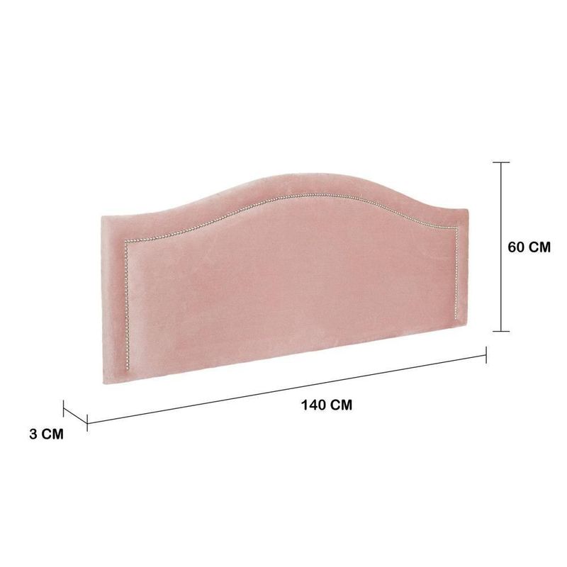 Cabeceira Casal Curva Luxo 140x60 Veludo Rosê - Tachas PrataCabeceira estofada para cama box, modelo Curva Luxo.A cabeceira é fabricada com materiais de alta qualidade e a instalação é feita de maneira simples na parede, com o suporte que já acompanha o produto.Outras informações:- Medidas: 140 (comprimento) x 60 (altura) x 3 (largura).- Tamanho: Casal.- Modelo: Curva Luxo.- Material: MDF e espuma.- Fixação: Na parede (suporte acompanha o produto).- Marca: FLAMINGO DESIGN.*A instalação é de total responsabilidade do comprador.