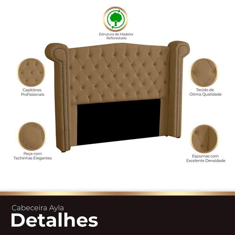 Cabeceira Casal Estofada Para Cama Box Ayla Veludo Cor CapuccinoNossa cabeceira estofada Ayla para cama box casal é a chave para transformar seu quarto em um retiro de luxo. Seu design contemporâneo e elegante acrescenta um toque de romantismo e sofisticação ao ambiente. Os detalhes em tachinha de alumínio realçam a sensação de exclusividade, enquanto o aplique em MDF eleva o nível de requinte. Com botões delicadamente revestidos no tecido, na mesma cor do móvel, esta cabeceira é o toque final que você deseja. Descubra o conforto e o charme inigualáveis que apenas nossa cabeceira pode proporcionar. Torne seu quarto um verdadeiro oásis de beleza e estilo hoje mesmo!ESPECIFICAÇÕESMaterial da estrutura: Madeira de reflorestamento;Revestimento: Tecido Veludo;Espuma: de alta densidade;DIMENSÕES DA CABECEIRAAltura total: 1,34cm;Largura total: 1,65 para cama de 1,40cm;Profundidade total: 22cm;Peso: 15kg.A GARANTIA É DE FÁBRICANa Ateliê do Conforto, estamos comprometidos em proporcionar a você não apenas produtos de qualidade e sofisticação incomparáveis, mas também uma garantia que reflete nossa confiança no que fazemos.Ao escolher comprar conosco, você recebe não apenas um produto excepcional, mas também a tranquilidade de saber que estamos ao seu lado. Se, por qualquer motivo, seu produto apresentar algum nos próximos noventa dias, como fabricantes, estamos aqui para oferecer total assistência.Nossa prioridade é garantir que sua experiência de compra seja não apenas satisfatória, mas excepcional. Queremos que você tenha a certeza de estar negociando com uma empresa que valoriza, acima de tudo, a confiança mútua com seus clientes. Sua satisfação é a nossa maior recompensa.QUEM SOMOS?Na Ateliê do Conforto, somos especializados em criar cabeceiras, calçadeiras e recamiers de excelência. Localizados em Arapongas, epicentro do setor moveleiro no Sul do país, nossa equipe altamente experiente garante qualidade superior. Escolha nossos produtos para aprimorar seu quarto com beleza e conforto inigualáveisCUIDADOS COM A LIMPEZAUtilizar um pano limpo e seco. Não limpar com produtos abrasivos ou escovas. Não deixar exposta à luz do sol diretamente pois isso irá diminuir a vida útil do produto, fazendo-o envelhecer precocemente. Este produto não é recomendado para ambientes externos onde possa receber chuva.MONTAGEM- A Cabeceira chegará montada para você, bastando apenas colocar os pés.INFORMAÇÕES IMPORTANTES- Todos os produtos vão embalados com total ;- A do produto é realizada em todo território , até onde as rodovias alcançam, s fluviais ou aéreas devem ser cotadas a parte;- Objetos decorativos que aparecem na foto não acompanham o produto;- Pode haver alguma diferença de tonalidade entre a imagem e o produto real, por conta do tratamento de imagens e a calibração de cores do seu monitor;- Por se tratar de estofado as medidas podem ter uma pequena variação em até 3 cm;- Confira as dimensões do produto e certifique-se de que passará normalmente por supostos elevadores, portas, escadas e/ou corredores de sua residência, já que nossa não inclui a subida de lances de escada, ou o de produtos;- Ao receber a mercadoria, o cliente deve verificar as condições da embalagem, caso haja alguma não assine o de ;- Observando as orientações acima, evita-se futuros desagrados ou imprevistos com a do produto. Havendo despesas adicionais, serão de responsabilidade do cliente.