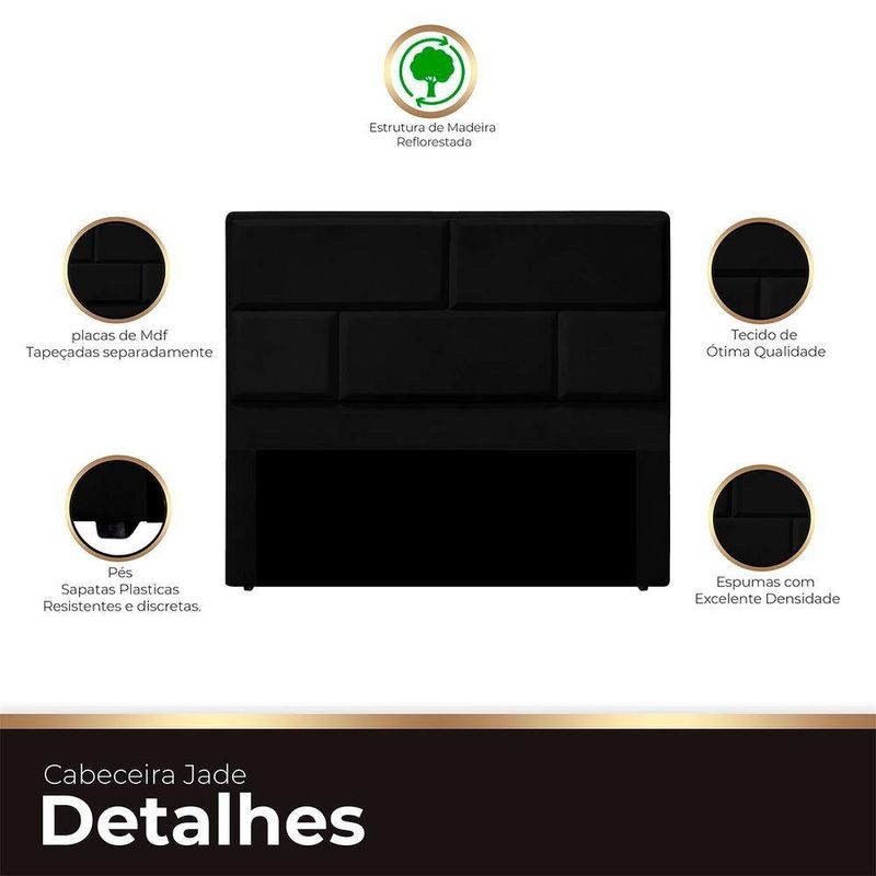 Cabeceira Casal Estofada Para Cama Box Jade Veludo Preto Transforme seu quarto em um santuário de estilo e elegância com a Cabeceira Jade, especialmente estofada para cama box casal. Com um design estiloso, moderno e romântico, esta cabeceira sofisticada redefine a atmosfera do seu espaço de descanso. Detalhes em cortes, com formatos inspirados em placas, conferem uma estética única, adicionando um toque de sofisticação ao seu quarto. A Jade é mais do que uma cabeceira, é uma declaração de estilo, proporcionando um toque distinto a cada noite. Adquira a Cabeceira Jade e eleve o padrão da sua experiência de sono com um toque de glamour.ESPECIFICAÇÕESMaterial da estrutura: Madeira de reflorestamento;Revestimento: Tecido Veludo;Espuma: De alta densidade;DIMENSÕES DA CABECEIRAAltura total: 1,26cm;Largura total: 1,40cm;Profundidade total: 0,10cm;Peso: 12kg.A GARANTIA É DE FÁBRICANa Ateliê do Conforto, estamos comprometidos em proporcionar a você não apenas produtos de qualidade e sofisticação incomparáveis, mas também uma garantia que reflete nossa confiança no que fazemos.Ao escolher comprar conosco, você recebe não apenas um produto excepcional, mas também a tranquilidade de saber que estamos ao seu lado. Se, por qualquer motivo, seu produto apresentar algum nos próximos noventa dias, como fabricantes, estamos aqui para oferecer total assistência.Nossa prioridade é garantir que sua experiência de compra seja não apenas satisfatória, mas excepcional. Queremos que você tenha a certeza de estar negociando com uma empresa que valoriza, acima de tudo, a confiança mútua com seus clientes. Sua satisfação é a nossa maior recompensa.QUEM SOMOS?Na Ateliê do Conforto, somos especializados em criar cabeceiras, calçadeiras e recamiers de excelência. Localizados em Arapongas, epicentro do setor moveleiro no Sul do país, nossa equipe altamente experiente garante qualidade superior. Escolha nossos produtos para aprimorar seu quarto com beleza e conforto inigualáveisCUIDADOS COM A LIMPEZAUtilizar um pano limpo e seco. Não limpar com produtos abrasivos ou escovas. Não deixar exposta à luz do sol diretamente pois isso irá diminuir a vida útil do produto, fazendo-o envelhecer precocemente. Este produto não é recomendado para ambientes externos onde possa receber chuva.MONTAGEM- A Cabeceira chegará montada para você, bastando apenas colocar os pés.INFORMAÇÕES IMPORTANTES- Todos os produtos vão embalados com total ;- A do produto é realizada em todo território , até onde as rodovias alcançam, s fluviais ou aéreas devem ser cotadas a parte;- Objetos decorativos que aparecem na foto não acompanham o produto;- Pode haver alguma diferença de tonalidade entre a imagem e o produto real, por conta do tratamento de imagens e a calibração de cores do seu monitor;- Por se tratar de estofado as medidas podem ter uma pequena variação em até 3 cm;- Confira as dimensões do produto e certifique-se de que passará normalmente por supostos elevadores, portas, escadas e/ou corredores de sua residência, já que nossa não inclui a subida de lances de escada, ou o de produtos;- Ao receber a mercadoria, o cliente deve verificar as condições da embalagem, caso haja alguma não assine o de ;- Observando as orientações acima, evita-se futuros desagrados ou imprevistos com a do produto. Havendo despesas adicionais.