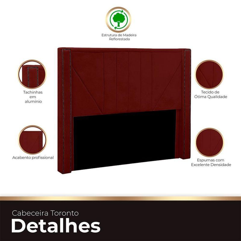 Cabeceira Casal Estofada Para Cama Box Toronto Veludo Cor MarsalaTransforme seu quarto em um verdadeiro refúgio de elegância com a Cabeceira Estofada Toronto. Esta peça é a definição de estilo, modernidade e sofisticação. Com detalhes em cortes em linhas icais e inclinadas, e taxinhas de alumínio nas laterais, ela apresenta uma elegante elevação que lembra uma moldura para a cama. A Cabeceira Toronto não apenas adiciona um toque de design ao seu quarto, mas também oferece um ambiente luxuoso e acolhedor. Eleve o padrão do seu espaço de descanso com esta peça que combina funcionalidade com um estilo impecável.ESPECIFICAÇÕESMaterial da estrutura: Madeira de reflorestamento;Revestimento: Tecido Veludo;Espuma: De alta densidade;DIMENSÕES DA CABECEIRAAltura total: 1,34cm;Largura total: 1,60 para cama de 1,40cm;Profundidade total: 14cm;Peso: 15kg.A GARANTIA É DE FÁBRICANa Ateliê do Conforto, estamos comprometidos em proporcionar a você não apenas produtos de qualidade e sofisticação incomparáveis, mas também uma garantia que reflete nossa confiança no que fazemos.Ao escolher comprar conosco, você recebe não apenas um produto excepcional, mas também a tranquilidade de saber que estamos ao seu lado. Se, por qualquer motivo, seu produto apresentar algum nos próximos noventa dias, como fabricantes, estamos aqui para oferecer total assistência.Nossa prioridade é garantir que sua experiência de compra seja não apenas satisfatória, mas excepcional. Queremos que você tenha a certeza de estar negociando com uma empresa que valoriza, acima de tudo, a confiança mútua com seus clientes. Sua satisfação é a nossa maior recompensa.QUEM SOMOS?Na Ateliê do Conforto, somos especializados em criar cabeceiras, calçadeiras e recamiers de excelência. Localizados em Arapongas, epicentro do setor moveleiro no Sul do país, nossa equipe altamente experiente garante qualidade superior. Escolha nossos produtos para aprimorar seu quarto com beleza e conforto inigualáveisCUIDADOS COM A LIMPEZAUtilizar um pano limpo e seco. Não limpar com produtos abrasivos ou escovas. Não deixar exposta à luz do sol diretamente pois isso irá diminuir a vida útil do produto, fazendo-o envelhecer precocemente. Este produto não é recomendado para ambientes externos onde possa receber chuva.MONTAGEM- A Cabeceira chegará montada para você, bastando apenas colocar os pés.INFORMAÇÕES IMPORTANTES- Todos os produtos vão embalados com total ;- A do produto é realizada em todo território , até onde as rodovias alcançam, s fluviais ou aéreas devem ser cotadas a parte;- Objetos decorativos que aparecem na foto não acompanham o produto;- Pode haver alguma diferença de tonalidade entre a imagem e o produto real, por conta do tratamento de imagens e a calibração de cores do seu monitor;- Por se tratar de estofado as medidas podem ter uma pequena variação em até 3 cm;- Confira as dimensões do produto e certifique-se de que passará normalmente por supostos elevadores, portas, escadas e/ou corredores de sua residência, já que nossa não inclui a subida de lances de escada, ou o de produtos;- Ao receber a mercadoria, o cliente deve verificar as condições da embalagem, caso haja alguma não assine o de ;- Observando as orientações acima, evita-se futuros desagrados ou imprevistos com a do produto. Havendo despesas adicionais, serão de responsabilidade do cliente.
