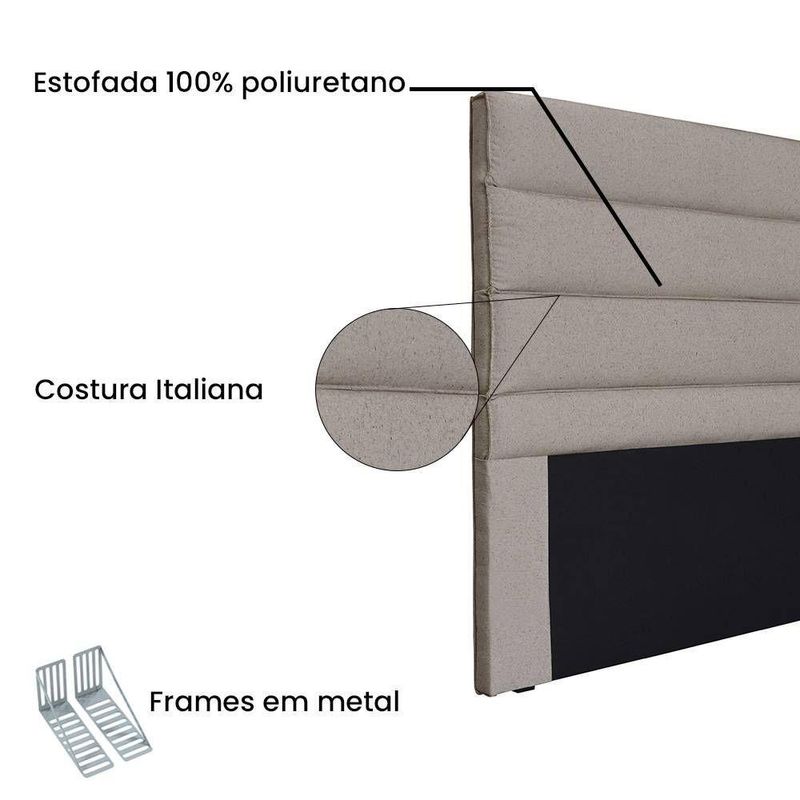 Cabeceira Casal King 1,95m Estofada Em Tecido Linho Greta - Lucadi Rústico AreiaA Cabeceira Casal King 1,95m Greta combina aconchego, textura e elegância para transformar instantaneamente o seu quarto. Seu design com faixas horizontais e costura italiana cria um visual moderno e acolhedor, enquanto o revestimento em linho Rústico traz sofisticação na medida certa.Uma peça pensada para quem deseja renovar o ambiente com charme, conforto e personalidade — tudo isso com instalação fácil e compatibilidade com qualquer cama box.BenefíciosDesign contemporâneo com faixas estofadas e acabamento impecávelTecido Linho Rústico premium, elegante e resistenteCostura Italiana, que reforça o visual moderno e o acabamento refinadoEstrutura reforçada em madeira industrializada + espuma D23Frames metálicos inclusos para fixação segura na cama boxConforto visual e tátil, ideal para cabeceiras de quartos modernosDisponível nas cores: Rústico Natural, Rústico Areia e Rústico GrígioFicha TécnicaModelo: Cabeceira Greta Tecido LinhoCores disponíveis: linho Rústico natural, linho Rústico areia e linho Rústico grígioEstrutura: Madeira industrializada de alta resistênciaEspuma: D23 Selada - conforto intermediário e durávelEstofamento: 100% poliuretanoCostura: Italiana, reforçada e decorativaFixação: Acompanha frames metálicosAltura para o box: Ajustável conforme a altura do boxIndicação de uso: Quartos de casal, solteiro, queen e kingAltura: 125 cmLargura: 195 cmProfundidade: 8 cmPeso Líquido: 12,8 kgPeso Bruto: 14 kgIncluso: Manual + frames + parafusosGarantia: 90 dias contra defeitos de fabricaçãoCuidados e LimpezaUtilizar pano macio levemente umedecido.Evitar produtos químicos, abrasivos ou solventes.Aspirar com bocal adequado para estofados para remover poeira.Em manchas, utilizar sabão neutro diluído e movimentos suaves.Evitar exposição solar direta para preservar a cor do linho.Não esfregar com força para não danificar o tecido.Para limpeza profunda, contratar empresa especializada.Informações ImportantesAs imagens podem apresentar variação de tonalidade conforme iluminação e tela.Confira sempre as medidas para garantir o acesso ao ambiente.Estofados podem apresentar variação de até 2 cm devido ao processo de estofamento.Objetos decorativos das fotos não acompanham o produto.Produto enviado com pés fixados, sem necessidade de montagem.Verifique a embalagem no ato da entrega; havendo avarias, registre imediatamente e acione o SAC Lucadi.
