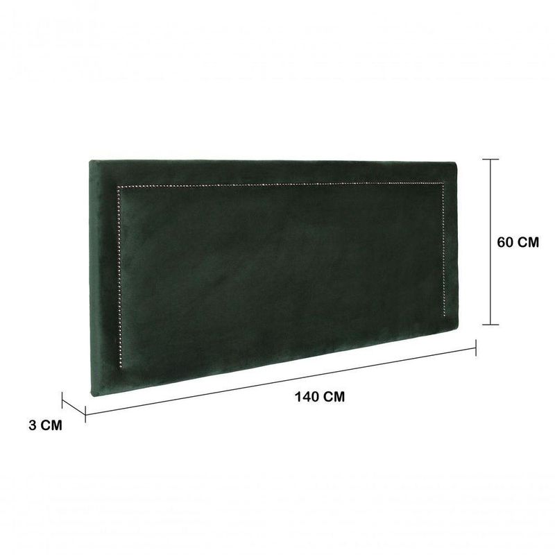 Cabeceira Casal Reta Luxo 140x60 Veludo Verde - Tachas Fumê"A cabeceira modelo Reta Luxo com tachas possui um design delicado e que irá trazer conforto e estilo para o seu quarto.Esta cabeceira estofada é feita em material MDF e espuma, revestida com o tecido selecionado na parte da frente, e TNT na parte de trás. As tachas são de metal galvanizado, o que garante uma proteção contra ferrugem. O produto não precisa de montagem, e vem pronto para ser fixado na parede com suportes que já acompanham o móvel. Isso te permite escolher a altura de acordo com o seu gosto, e garantir uma decoração incrível para o seu ambiente.A Flamingo Design te dá uma garantia de 3 meses contra qualquer defeito de fabricação!Confira abaixo mais detalhes sobre o produto:- Marca: Flamingo Design.- Modelo: Reta Luxo.- Tamanho: Casal.- Comprimento: 140cm.- Altura: 60cm.- Largura (espessura): 3cm.- Material: MDF e espuma.- Fixação: Na parede (suporte acompanha o produto).- Garantia: 3 meses.A instalação é de responsabilidade do comprador."