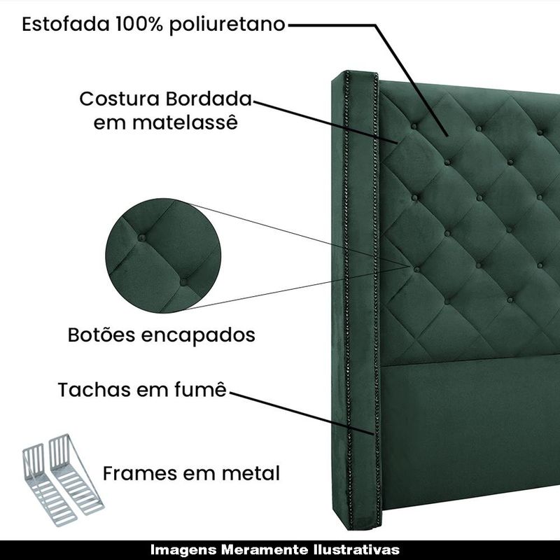 ColchõesCabeceiras Cama BoxCasalCabeceira Decorativa Casal 1,64M Loewe Veludo Verde Floresta - Gran Belo