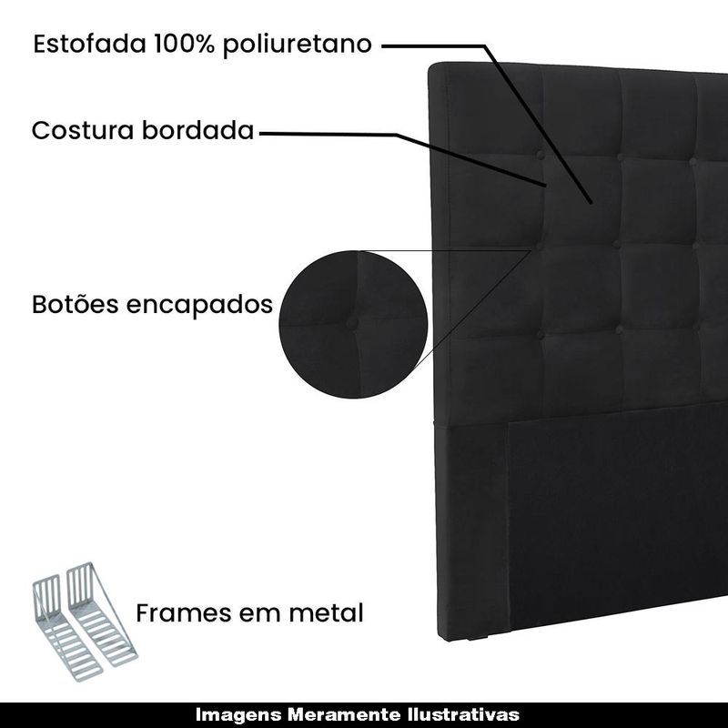 ColchõesCabeceiras Cama BoxKing SizeCabeceira Decorativa King Size 1,95M Tropea Veludo Preto - Gran Belo