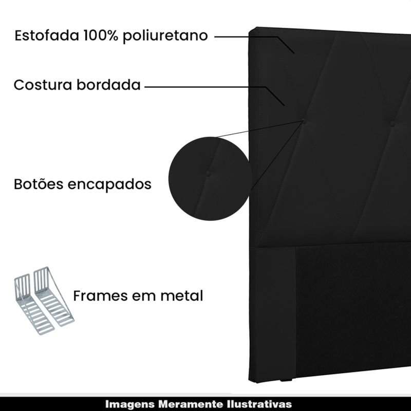ColchõesCabeceiras Cama BoxKing SizeCabeceira Decorativa King Size 1,95M Yves PU Preto - Gran Belo