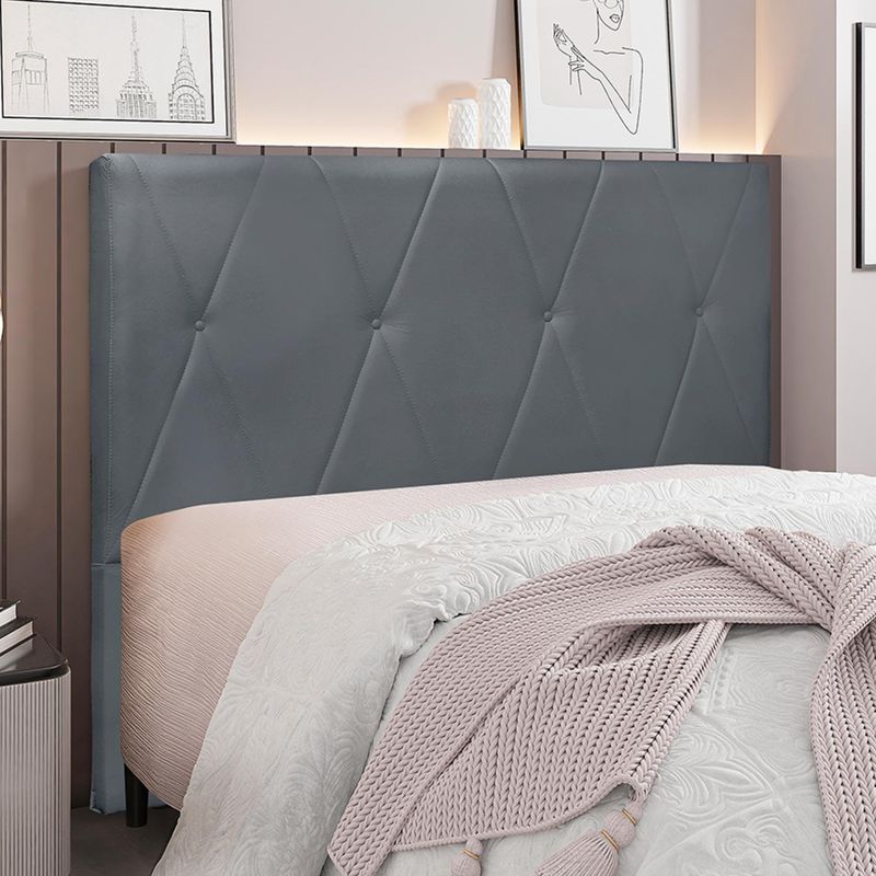ColchõesCabeceiras Cama BoxKing SizeCabeceira Decorativa King Size 1,95M Yves Veludo Cinza - Gran Belo