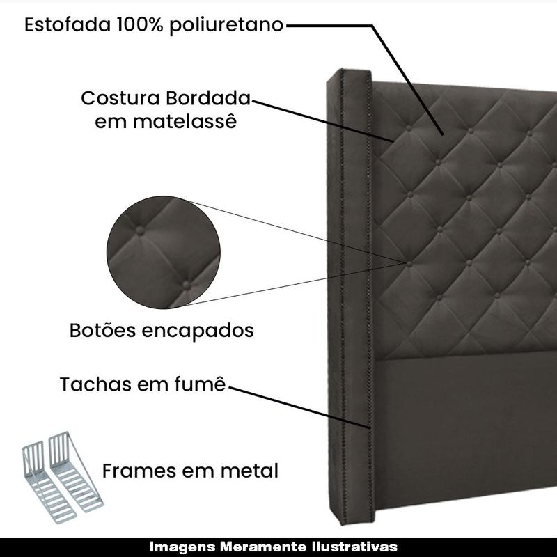 ColchõesCabeceiras Cama BoxKing SizeCabeceira Decorativa King Size 2,19M Loewe Suede Cinza - Gran Belo
