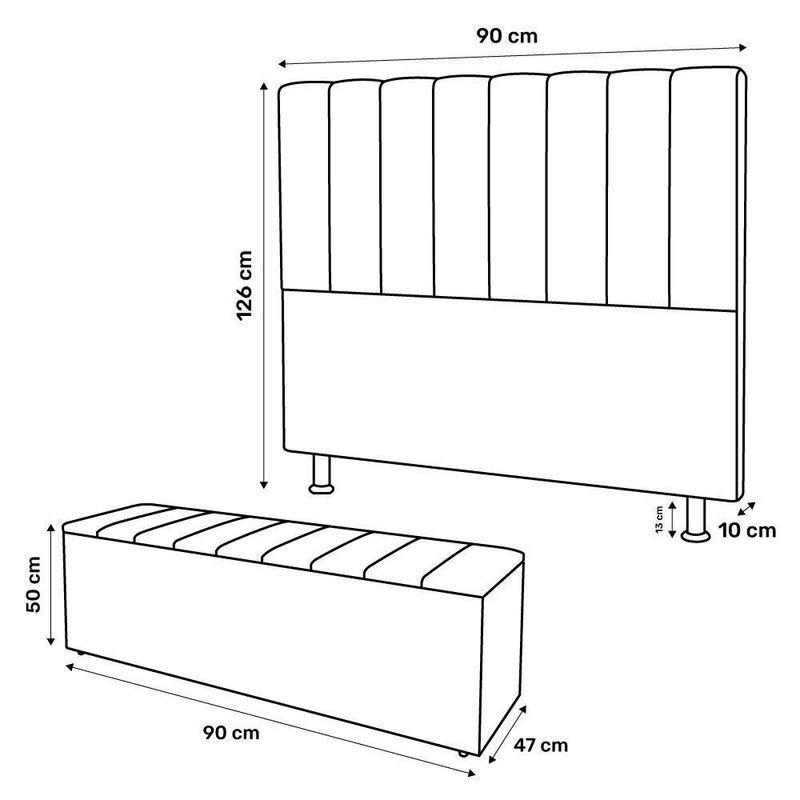 Kit Cabeceira E Baú Cama Box Solteiro Cora 90cm Suede Turquesa - Abmaza Que tal o Kit Cabeceira e Baú Cama Box Cora?Com design moderno a Cabeceira Cora vai dar um toque especial para o seu box. A Cabeceira Cora é ideal para quem busca um móvel elegante e ao mesmo tempo confortável. Vale lembrar que as cabeceiras ajudam a isolar a cama da parede gelada do inverno, tornando o ambiente mais aconchegante além de bonito. Se procura por uma bela decoração, esse item tem um modelo atraente e vai harmonizar e dar um up ao lar-style.Para complementar a decoração acrescente uma calçadeira na sua lista! Prático e funcional este móvel promete ser um grande aliado na hora de organizar seu dormitório. A Calçadeira Baú normalmente serve de apoio e extensão para sua Cama Box. Além disso conta com amplo espaço interno para você guardar Enxovais, Calçados, Cobertores e muito mais. Não é demais?! Compre Já!Dimensões da Cabeceira:Largura: 90 cmAltura: 126 cmProfundidade: 10 cmAltura dos Pés: 13 cmPeso Aproximado: 7 kgDimensões do Baú: 90x50x47 cmATENÇÃO:** PODE HAVER PEQUENA VARIAÇÃO DE COR DO PRODUTO REAL E A IMAGEM ANUNCIADA DEVIDO AO LOTE DE TECIDOS.** POR SE TRATAR DE ESTOFADO AS MEDIDAS PODEM SOFRER LIGEIRA VARIAÇÃO DE ATÉ 3 CM.** RECOMENDADO PARA COLCHÃO/BOX DE 88 CM.Características:Material da Estrutura: Madeira de EucaliptoTipo da Espuma: D-16Revestimento: SuedePossui Pés: SimTipo de Pés: PlásticoPossui Frame: NãoAmbiente Principal: Quarto Adulto, Quarto SolteiroTipo de Produto: Cabeceira Para Box, Encosto de Cama, Cabeceira Quarto, Baú, Calçadeira, SapateiraSistema de Montagem: Apoiada na Parede/Cama. Também pode ser fixada por Frame, esta peça deverá ser adquirida a parte, pois NÃO acompanha o produto.Possui Manual de Montagem: NãoDiferenciais:- Design Moderno- Cabeceira com Pés Rosqueáveis- Baú com Dobradiças- Matéria Prima de ReflorestamentoItens Inclusos:- 01 Cabeceira, 01 CalçadeiraMontagem:- Complexidade da Montagem: Baixa.- Recomendamos que seja feita por um profissional qualificado.- Produto enviado montado. Sendo necessário apenas rosquear os pés que acompanham o produto.Garantia de Fábrica:90 dias contra defeito de fabricação.Limpeza e cuidados: Utilizar pano levemente umedecido com água, seguido de pano seco. Não utilizar produtos químicos ou abrasivos na limpeza. Evitar contato com objetos cortantes. Manter ao abrigo de local interno, sem ficar exposto diretamente ao sol, calor e umidade excessivo.Importante:- Pode haver ligeira diferença de tonalidade entre a imagem digital e o produto real por conta do tratamento de imagens e a calibração de cores do seu monitor.- As imagens são meramente ilustrativas, não acompanham objetos de decoração e eletrônicos.- Produto para uso residencial em ambiente interno, não devendo ficar exposto diretamente ao sol, calor e umidades excessivas.- Ao receber a mercadoria verifique a condição da embalagem, caso apresente violação ou esteja danificada não assine o comprovante de entrega.- Montagem, desmontagem e outras instalações é de inteira responsabilidade do cliente.- Caso resida em apartamento ou condomínio é indispensável que confira as dimensões do produto e certifique-se de que passará normalmente por elevadores, portas, escadas e/ou corredores de sua residência. Não nos responsabilizamos no ato da entrega, por subir escadas/elevadores ou pelo transporte por guincho em apartamentos. Eventuais despesas são de responsabilidade do comprador.